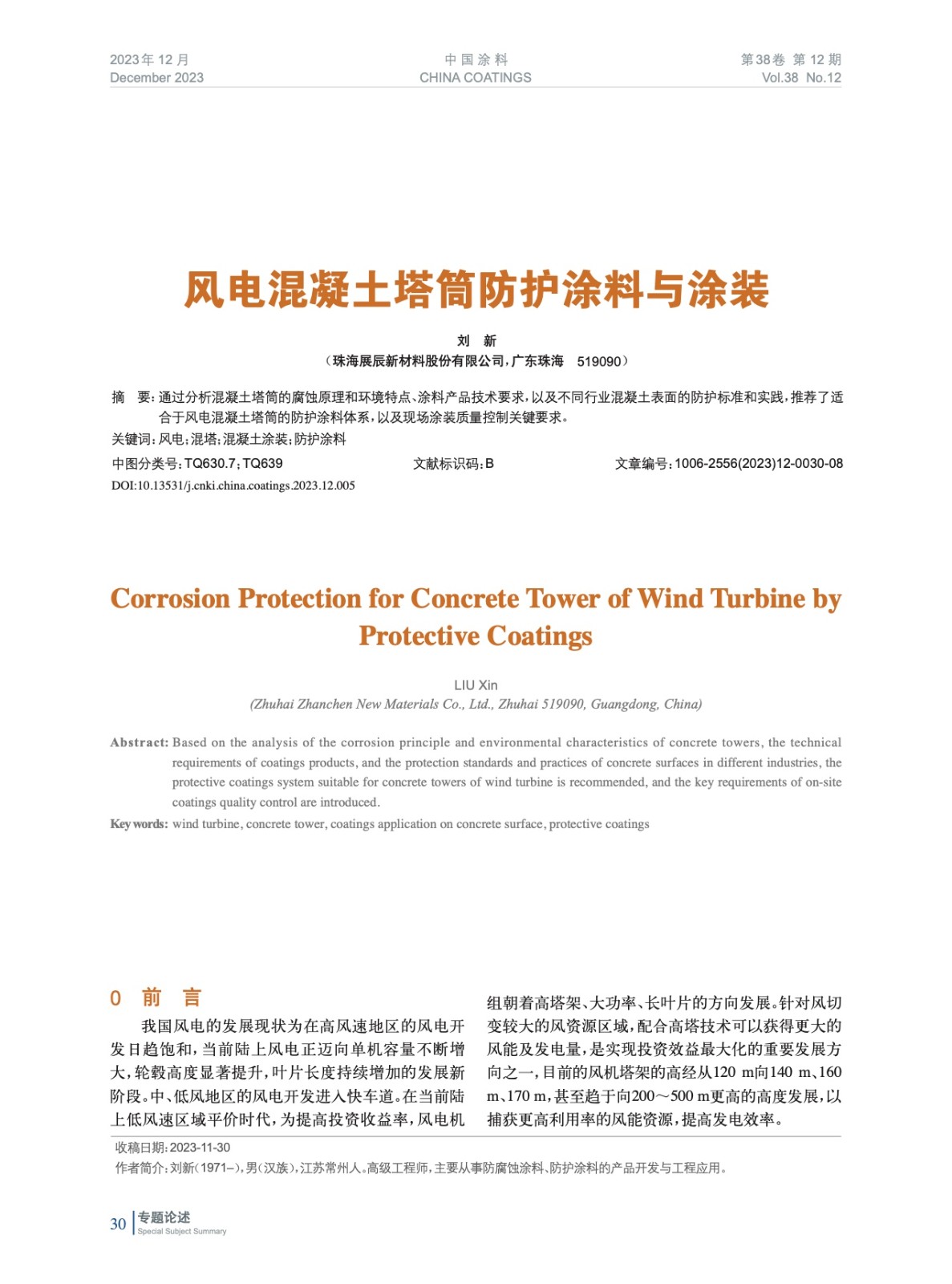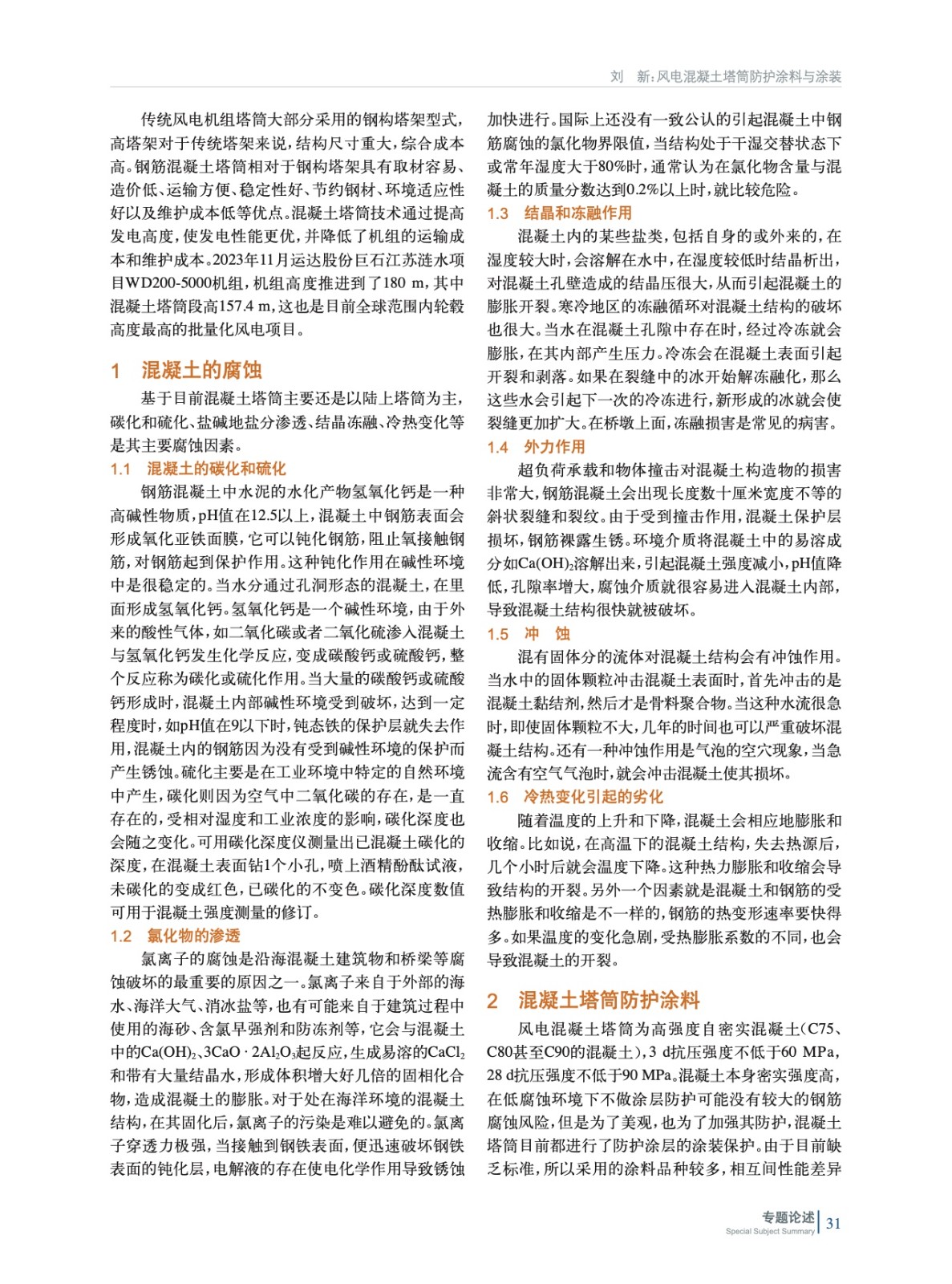 通過分析混凝土塔筒的腐蝕原理和環境特點、涂料產品技術要求,以及不同行業混凝土表面的防護標準和實踐,推薦了適合于風電混凝土塔筒的防護涂料體系,以及現場涂裝質量控制關鍵要求。