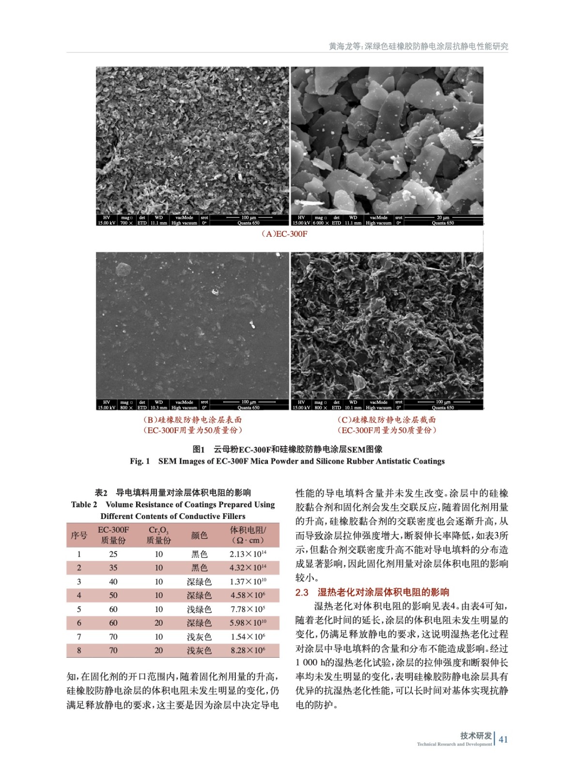 摘要:研究了自制深綠色硅橡膠防靜電涂層的抗靜電性能。結果表明,導電云母粉用量對體積電阻影響顯著;在一定范圍內,固化劑用量對體積電阻無明顯影響;濕熱老化試驗和熱空氣老化試驗結果表明,硅橡膠防靜電涂層具有優異的耐老化性能和穩定的抗靜電性能。