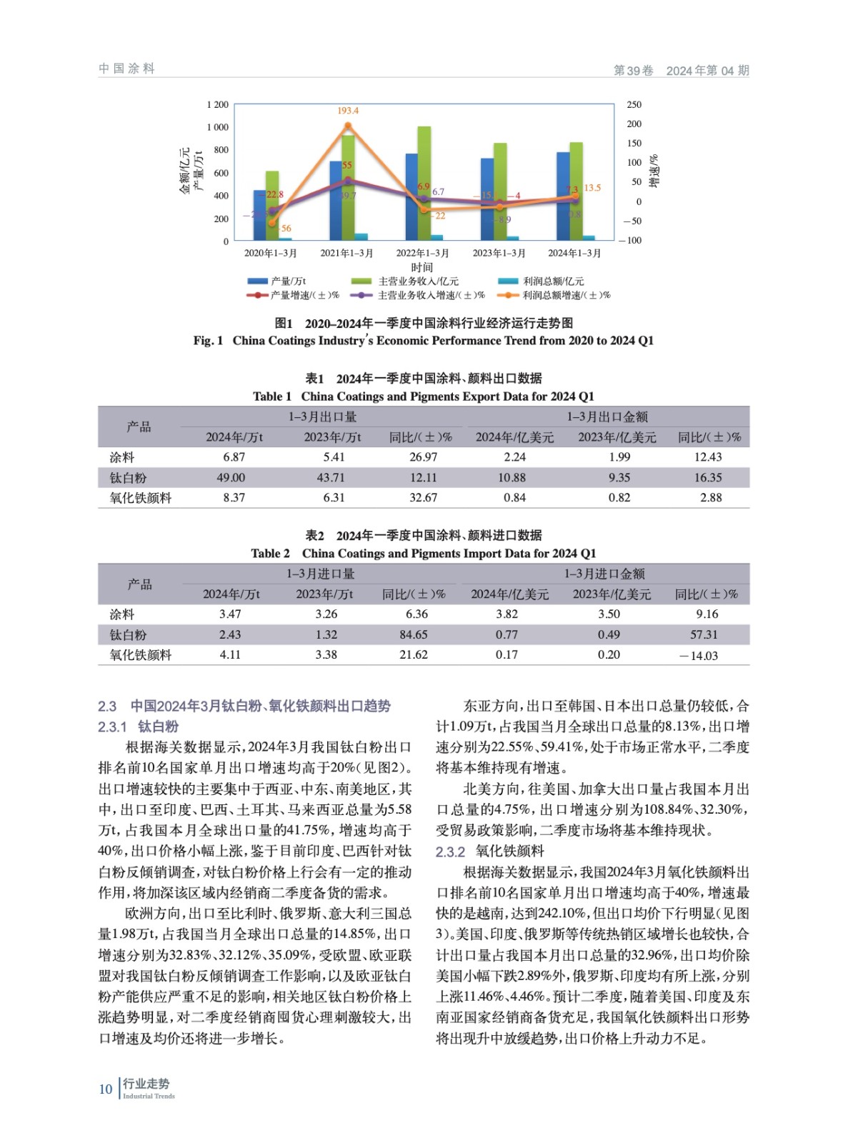 2024年一季度中國涂料、顏料行業(yè)經(jīng)濟(jì)運(yùn)行簡析