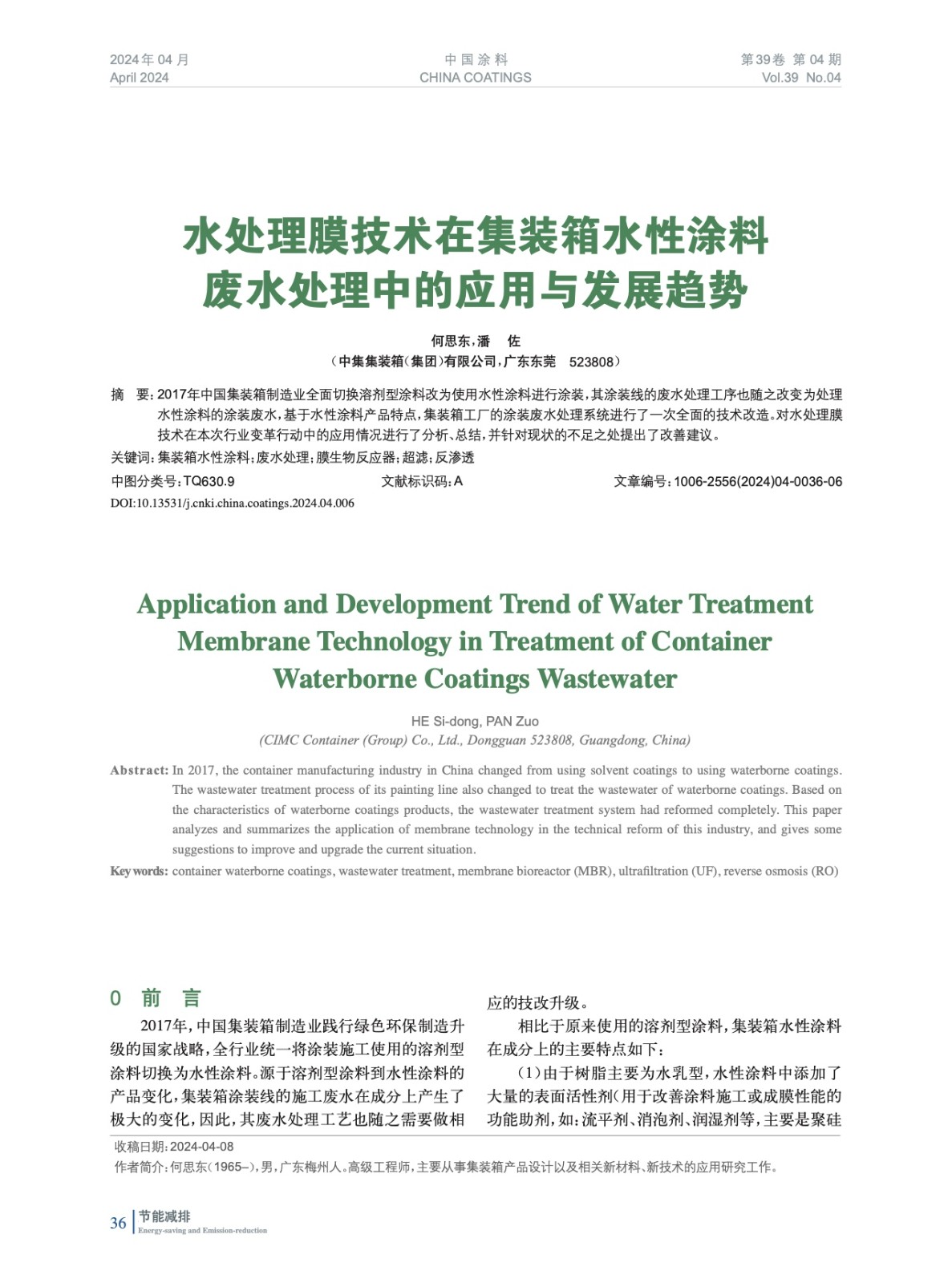 摘要:2017年中國集裝箱制造業全面切換溶劑型涂料改為使用水性涂料進行涂裝,其涂裝線的廢水處理工序也隨之改變為處理水性涂料的涂裝廢水,基于水性涂料產品特點,集裝箱工廠的涂裝廢水處理系統進行了一次全面的技術改造。對水處理膜技術在本次行業變革行動中的應用情況進行了分析、總結,并針對現狀的不足之處提出了改善建議。