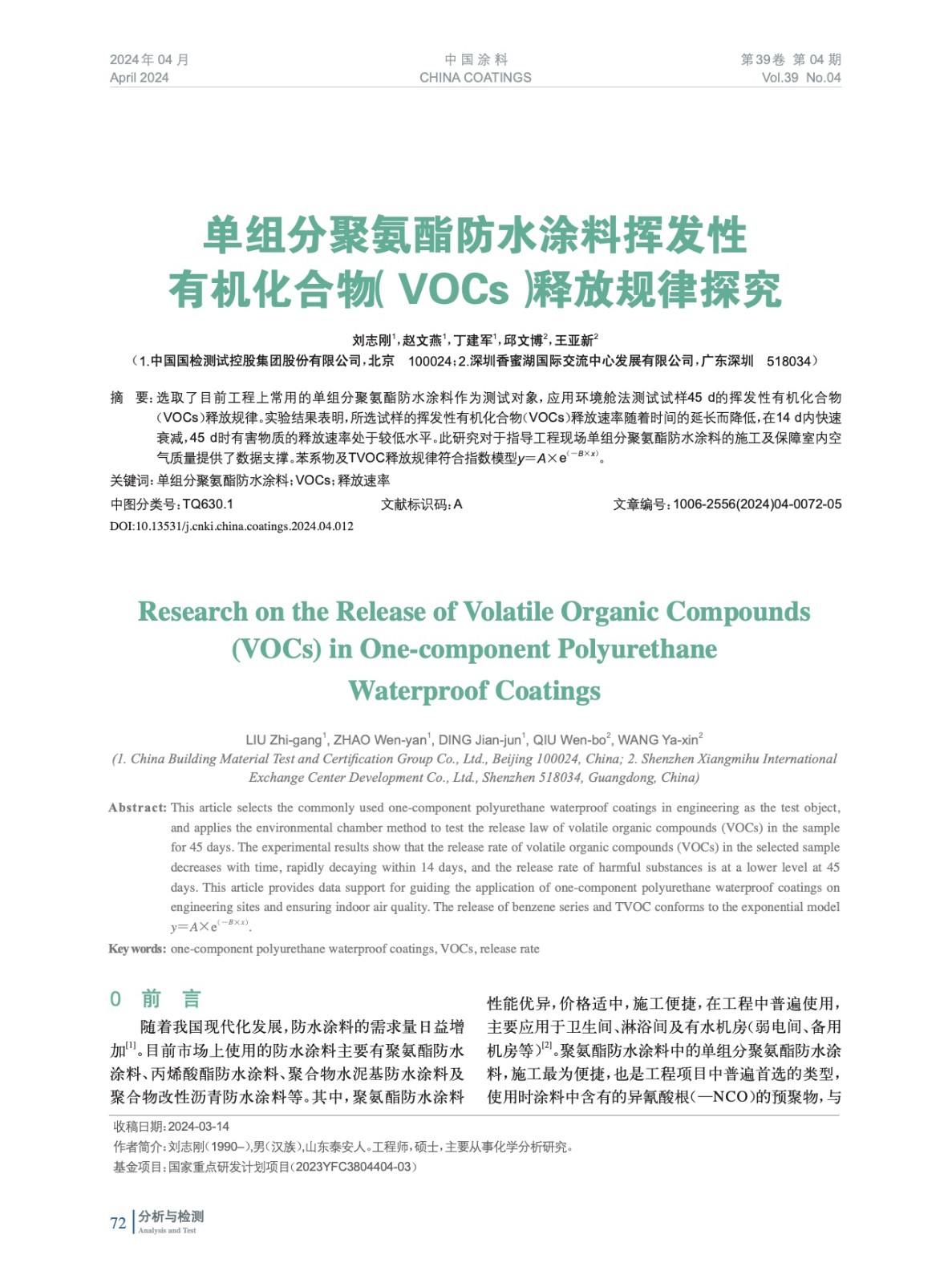 本文系作者@劉志剛,趙文燕,丁建軍,邱文博,王亞新 授權(quán)中國(guó)涂料網(wǎng)發(fā)表,并經(jīng)中國(guó)涂料網(wǎng)編輯,未經(jīng)允許不得轉(zhuǎn)載,如需轉(zhuǎn)載請(qǐng)聯(lián)系chinacoatingnet@vip.163.com
