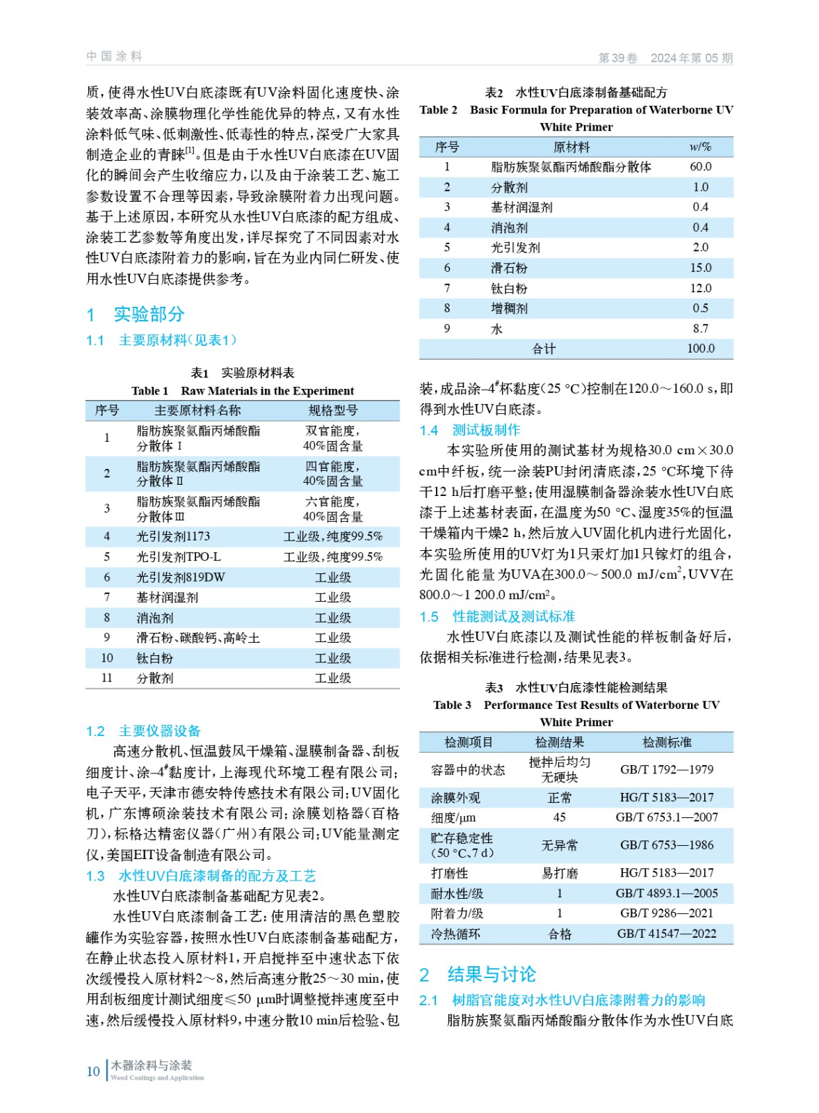 水性UV木器白底漆附著力影響因素的研究
