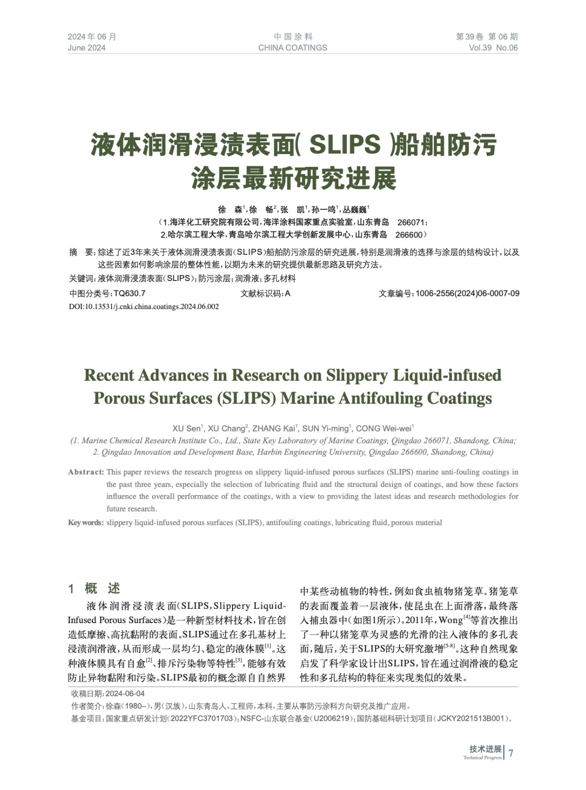 液體潤滑浸漬表面(SLIPS)船舶防污涂層最新研究進展