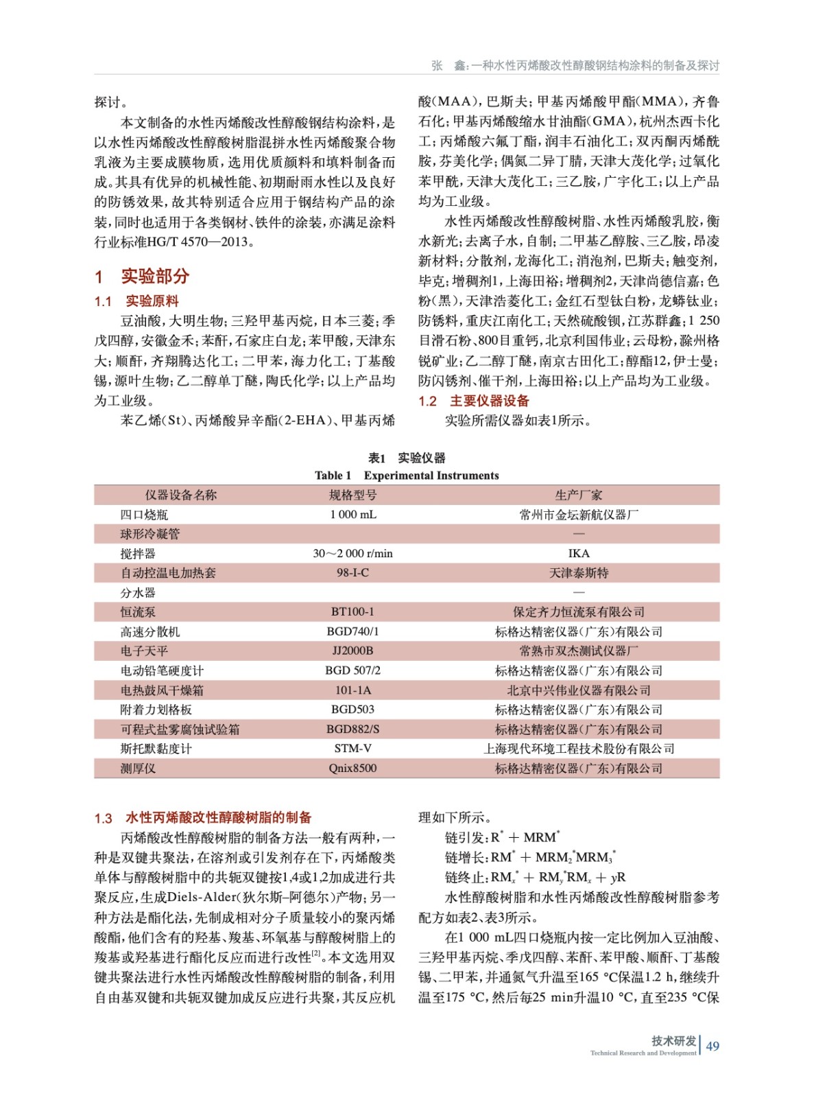 一種水性丙烯酸改性醇酸鋼結構涂料的制備及探討