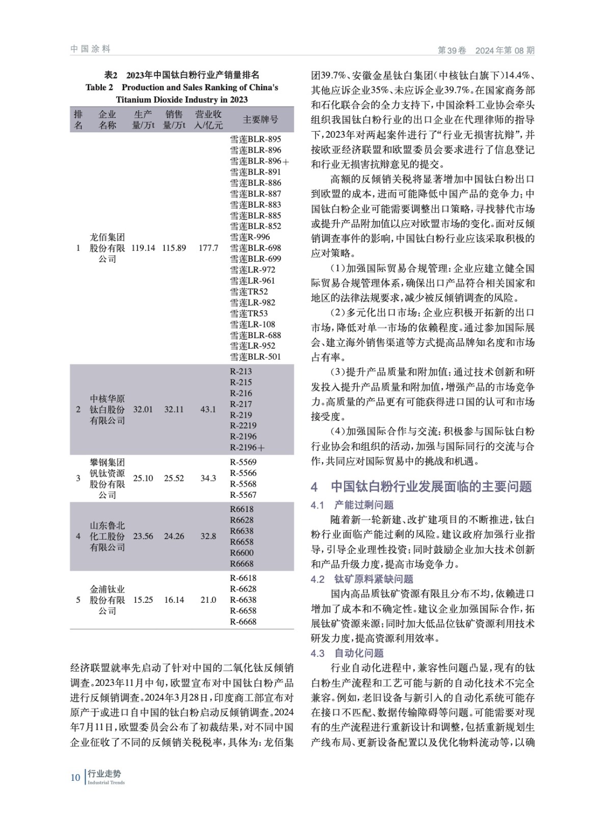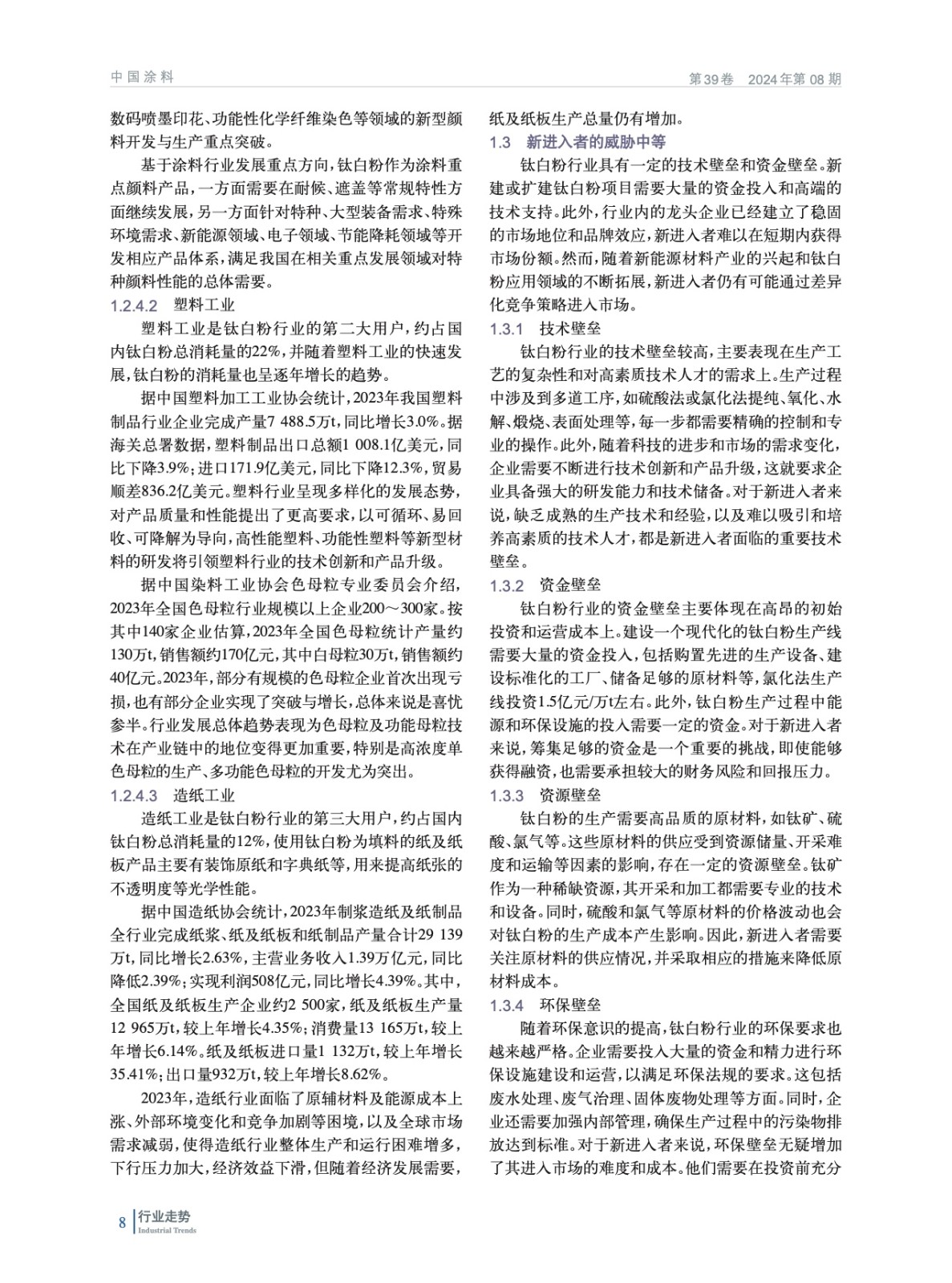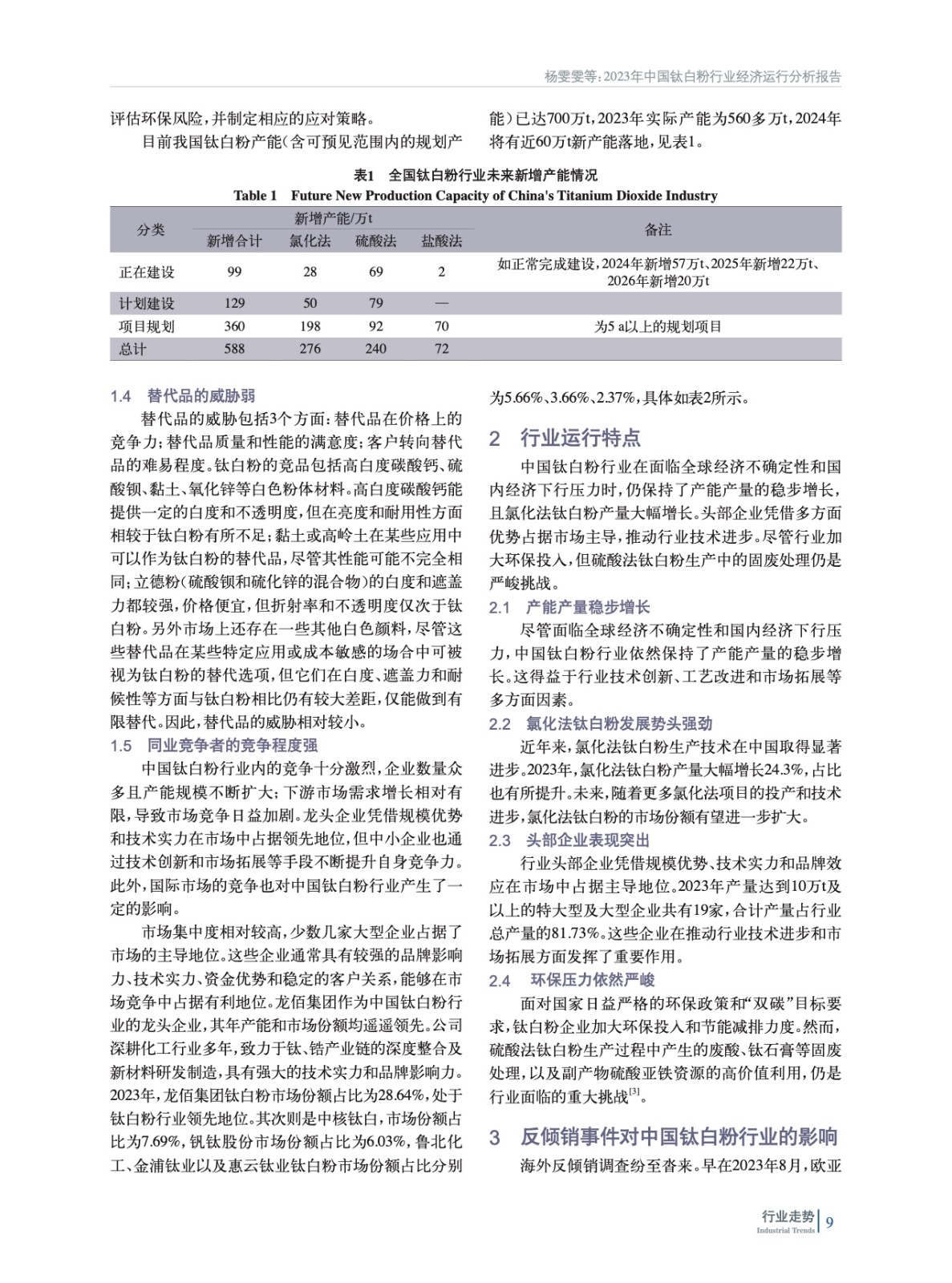 2023年中國鈦白粉行業經濟運行分析報告