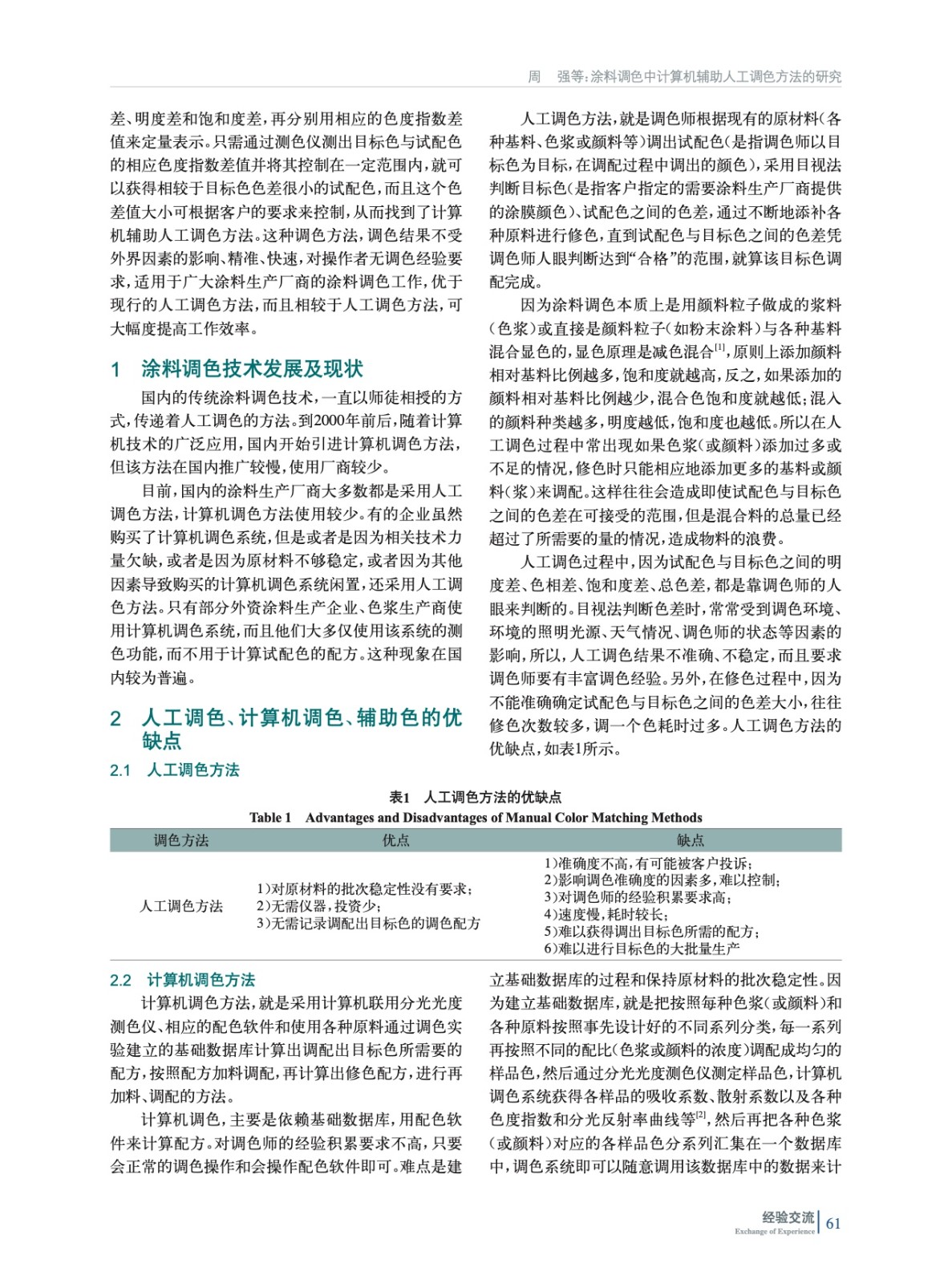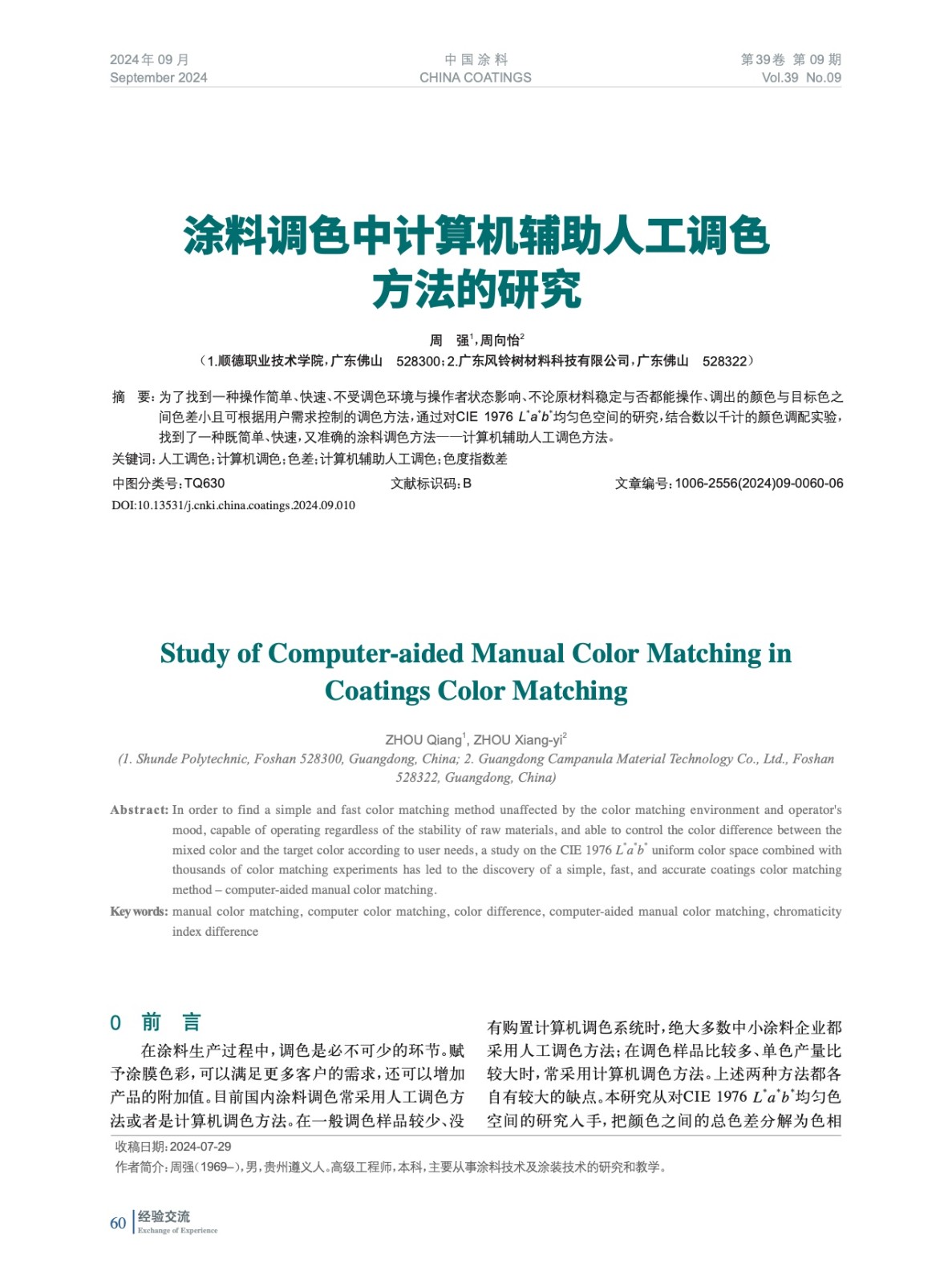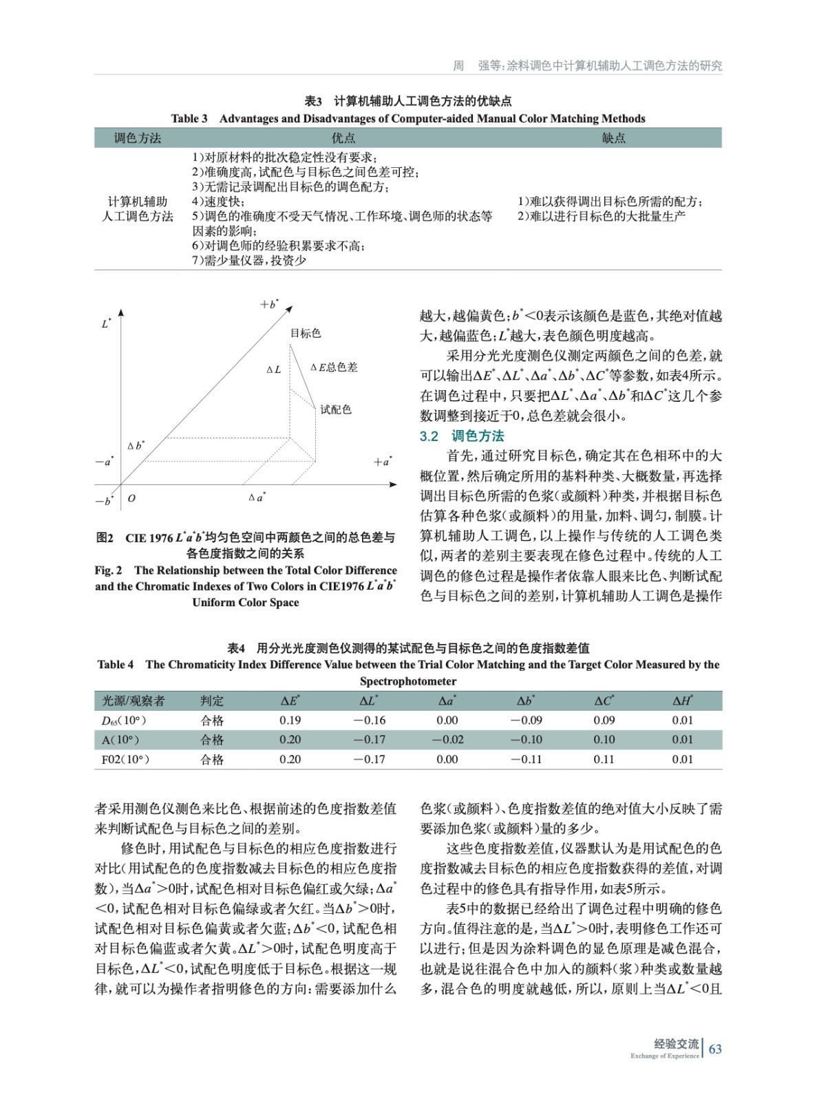 摘要:為了找到一種操作簡單、快速、不受調色環境與操作者狀態影響、不論原材料穩定與否都能操作、調出的顏色與目標色之間色差小且可根據用戶需求控制的調色方法,通過對CIE 1976 L*a*b*均勻色空間的研究,結合數以千計的顏色調配實驗,找到了一種既簡單、快速,又準確的涂料調色方法——計算機輔助人工調色方法。