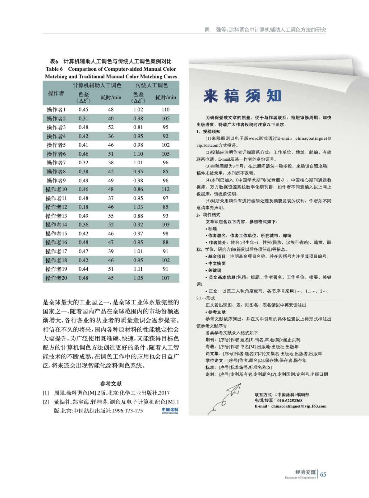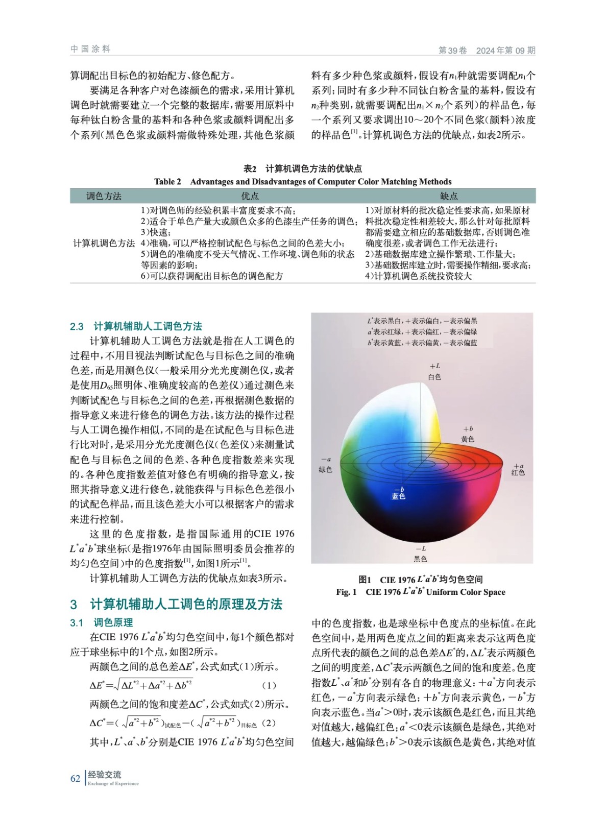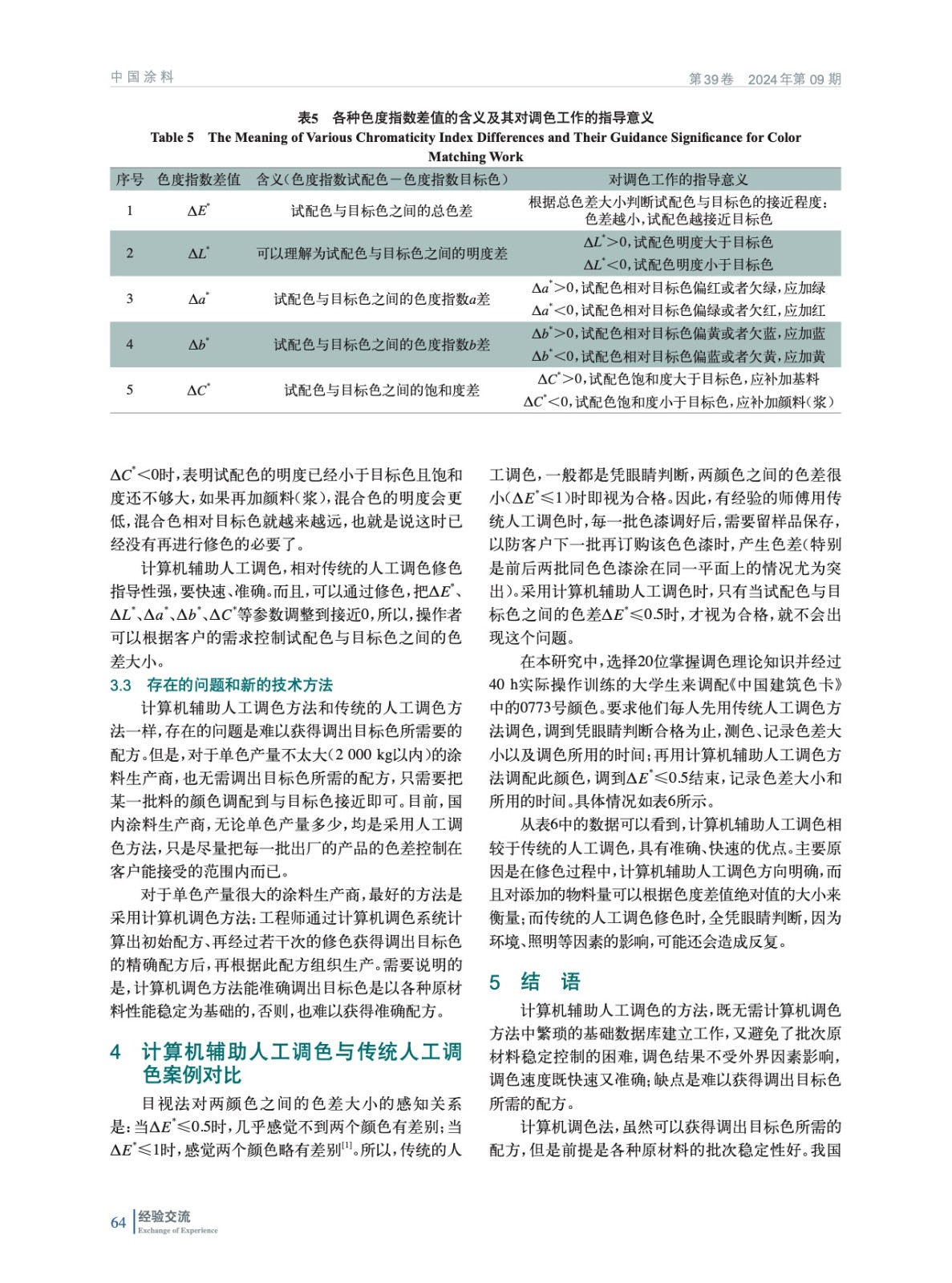 摘要:為了找到一種操作簡單、快速、不受調色環境與操作者狀態影響、不論原材料穩定與否都能操作、調出的顏色與目標色之間色差小且可根據用戶需求控制的調色方法,通過對CIE 1976 L*a*b*均勻色空間的研究,結合數以千計的顏色調配實驗,找到了一種既簡單、快速,又準確的涂料調色方法——計算機輔助人工調色方法。