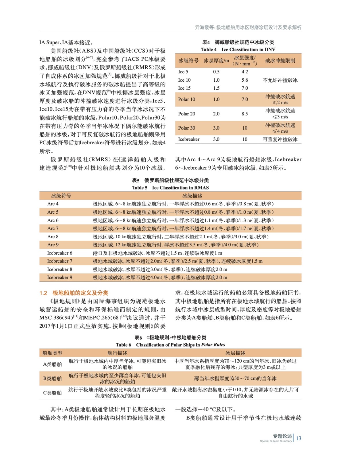 摘要:分析了不同船級社及團體對于冰區(qū)船舶的冰級分類,并通過冰級確定極地船舶的分類,從而確定冰區(qū)耐磨涂料在極地船舶上的應用需求。總結各船級社對于冰區(qū)耐磨涂料的應用要求,并調研國內(nèi)外相關產(chǎn)品,為我國冰區(qū)耐磨涂料的國產(chǎn)化發(fā)展提供指導。
