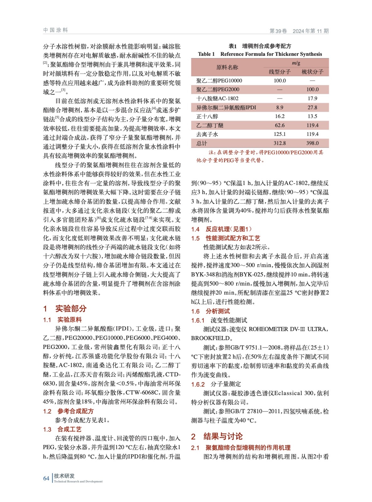 水性聚氨酯締合型增稠劑流變性能影響因素的研究