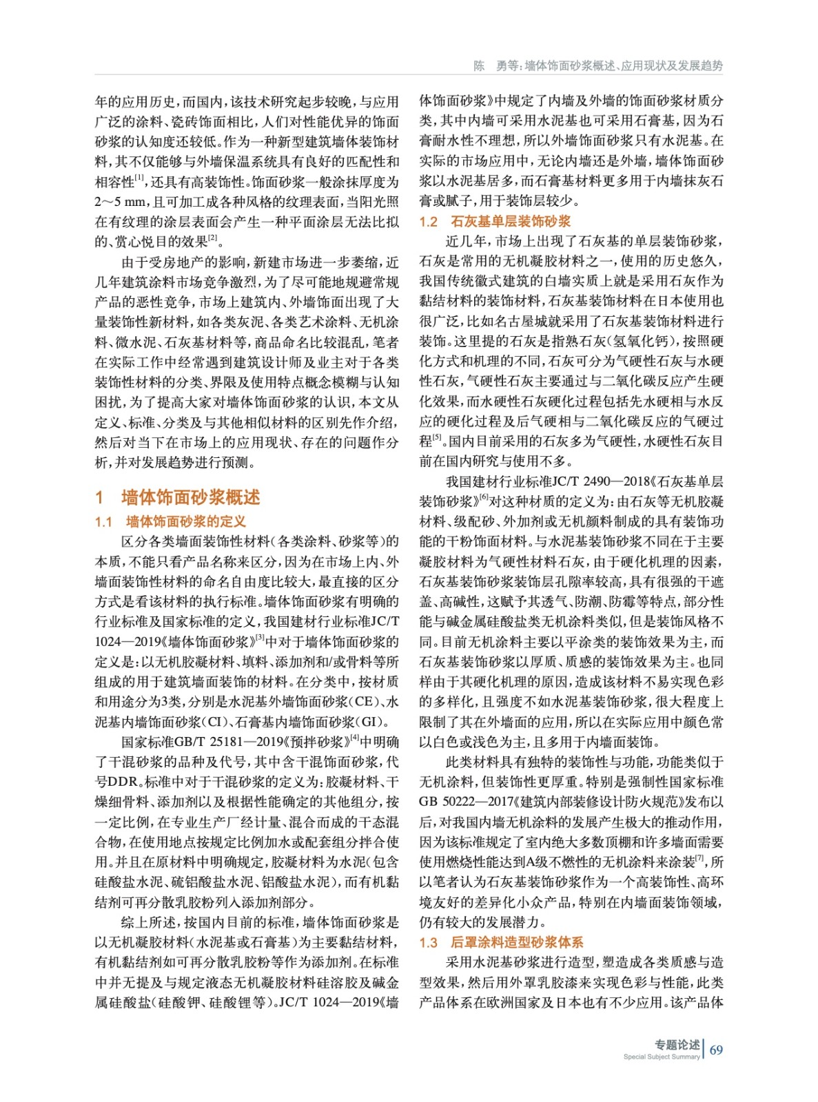 墻體飾面砂漿概述、應用現(xiàn)狀及發(fā)展趨勢