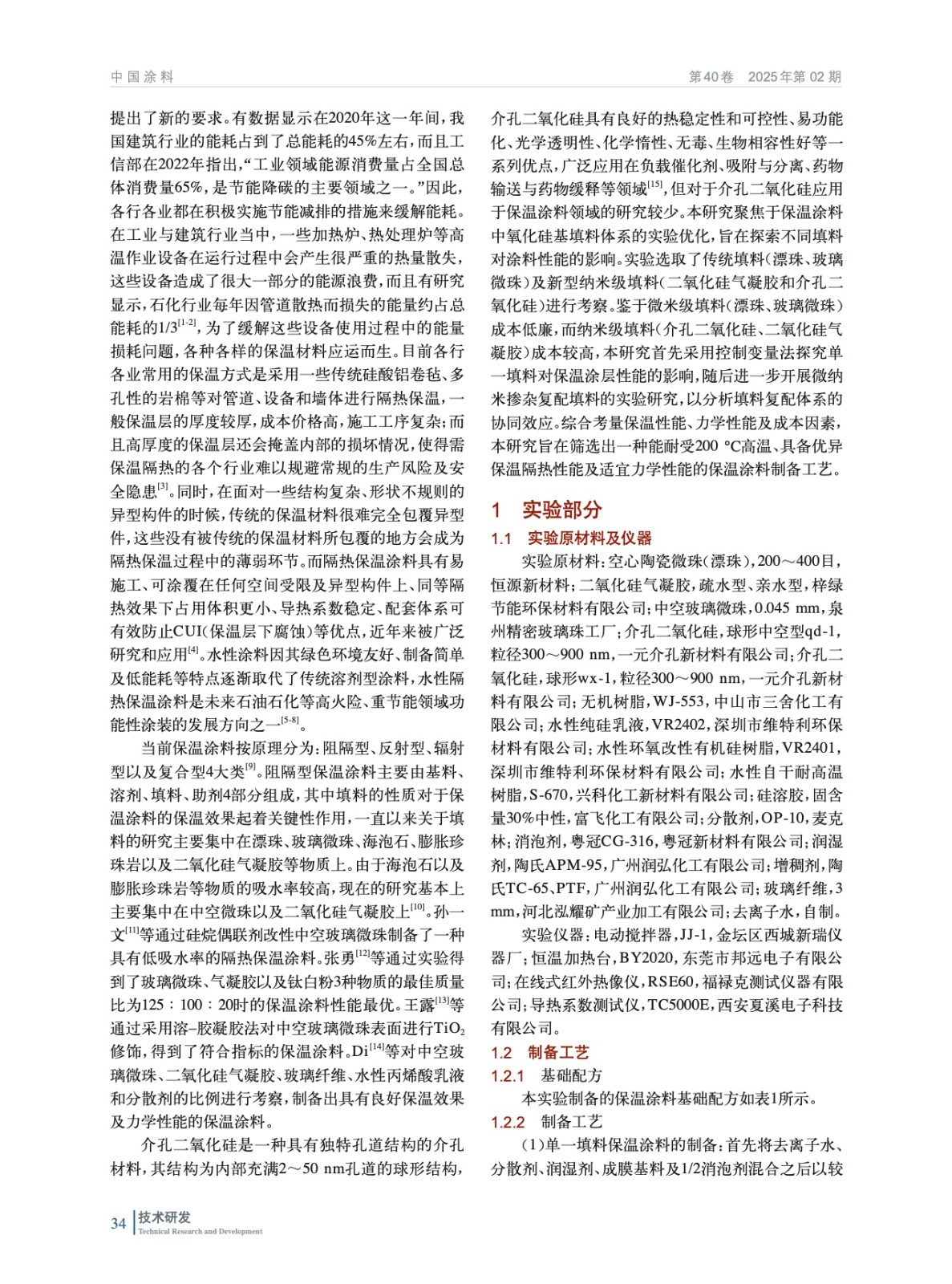 摘要:針對工業(yè)節(jié)能領(lǐng)域?qū)Ω邷乇夭牧系钠惹行枨螅槍鹘y(tǒng)涂層在200 ℃溫區(qū)存在的厚度過大、施工工藝復(fù)雜及功能單一等問題,系統(tǒng)開展保溫涂層的研發(fā)。選取無機(jī)體系樹脂作為成膜物質(zhì),采用以SiO2為主要成分的漂珠、玻璃微珠、氣凝膠和介孔二氧化硅為填料,通過中空或多孔結(jié)構(gòu)降低熱傳導(dǎo),且適配多種基體的分散性,實(shí)現(xiàn)高效隔熱與工藝兼容性。實(shí)驗(yàn)考察了不同樹脂、填料、顏基比及復(fù)配比例對保溫涂料隔熱溫差、導(dǎo)熱系數(shù)、硬度和附著力的影響。結(jié)果發(fā)現(xiàn),以無機(jī)體系樹脂WJ-553為成膜樹脂,顏基比1.5∶1,中空玻璃微珠與球形介孔二氧化硅填料總質(zhì)量分?jǐn)?shù)為30%,球形介孔二氧化硅摻雜量為4%時(shí),保溫涂料導(dǎo)熱系數(shù)可達(dá)0.086 W/(m·K),硬度6B,附著力等級為1級,耐溫性能突破200 ℃閾值。該研究成果為開發(fā)兼具高效隔熱、機(jī)械可靠及施工便利的新型工業(yè)保溫涂層提供了理論依據(jù)和技術(shù)方案,在高溫管道、工業(yè)窯爐等節(jié)能領(lǐng)域展現(xiàn)出重要應(yīng)用價(jià)值。