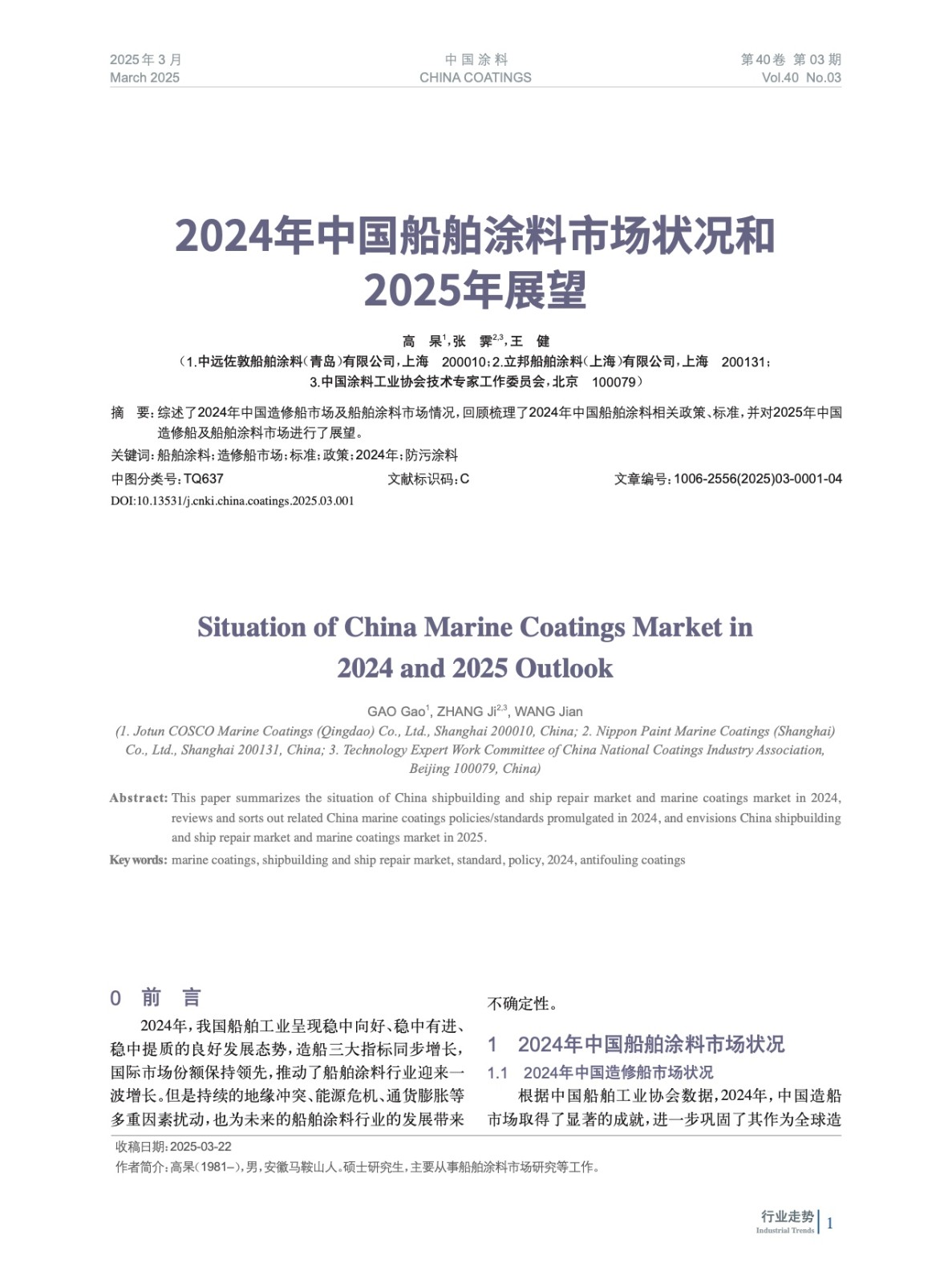 摘要:綜述了2024年中國(guó)造修船市場(chǎng)及船舶涂料市場(chǎng)情況,回顧梳理了2024年中國(guó)船舶涂料相關(guān)政策、標(biāo)準(zhǔn),并對(duì)2025年中國(guó)造修船及船舶涂料市場(chǎng)進(jìn)行了展望。