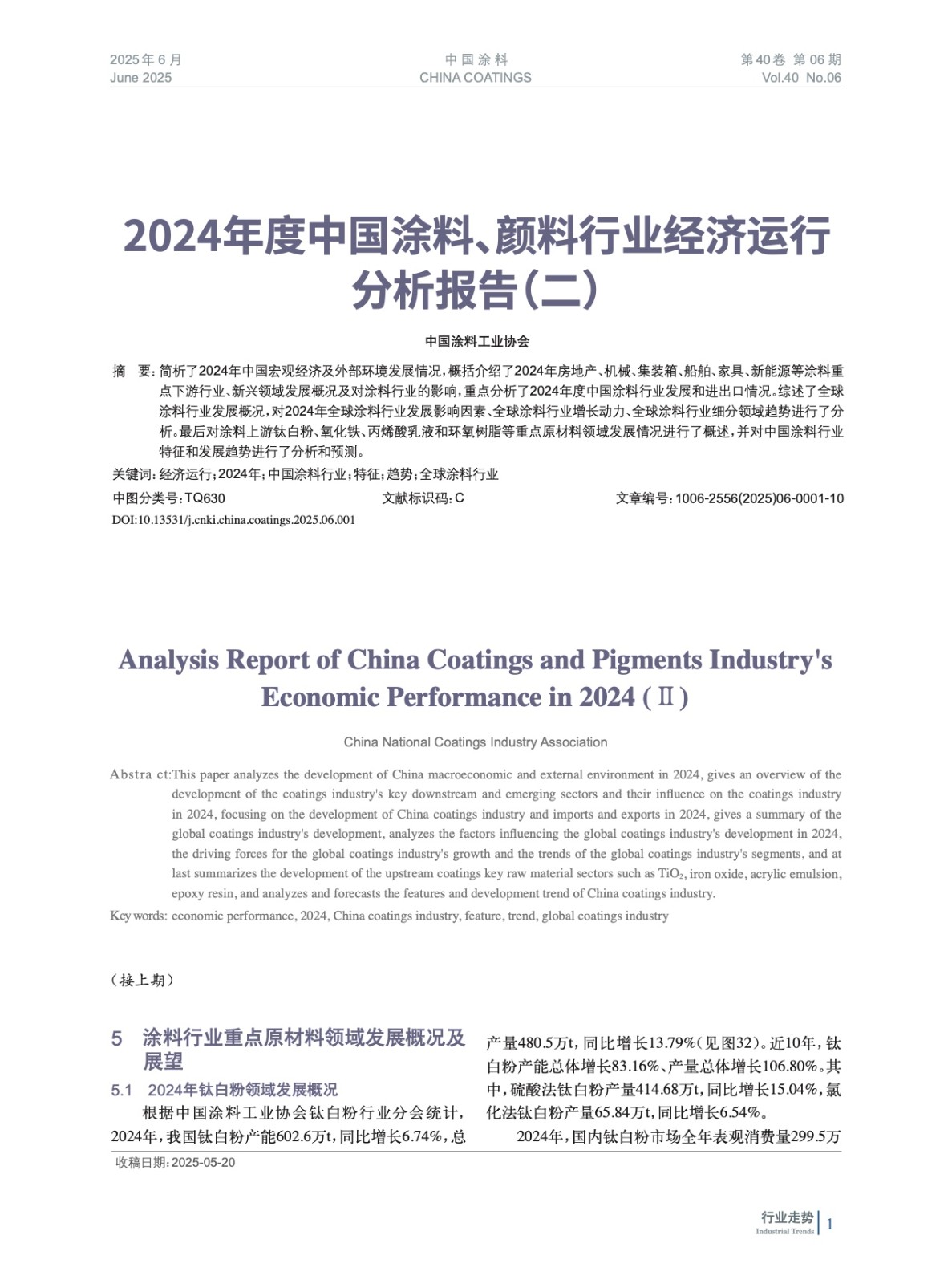 2024年度中國涂料、顏料行業經濟運行分析報告(二)