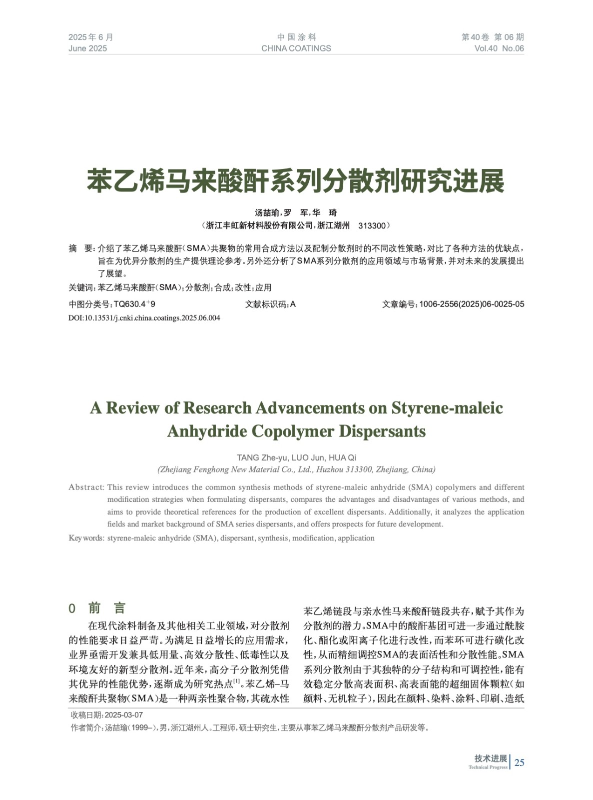 苯乙烯馬來酸酐系列分散劑研究進展