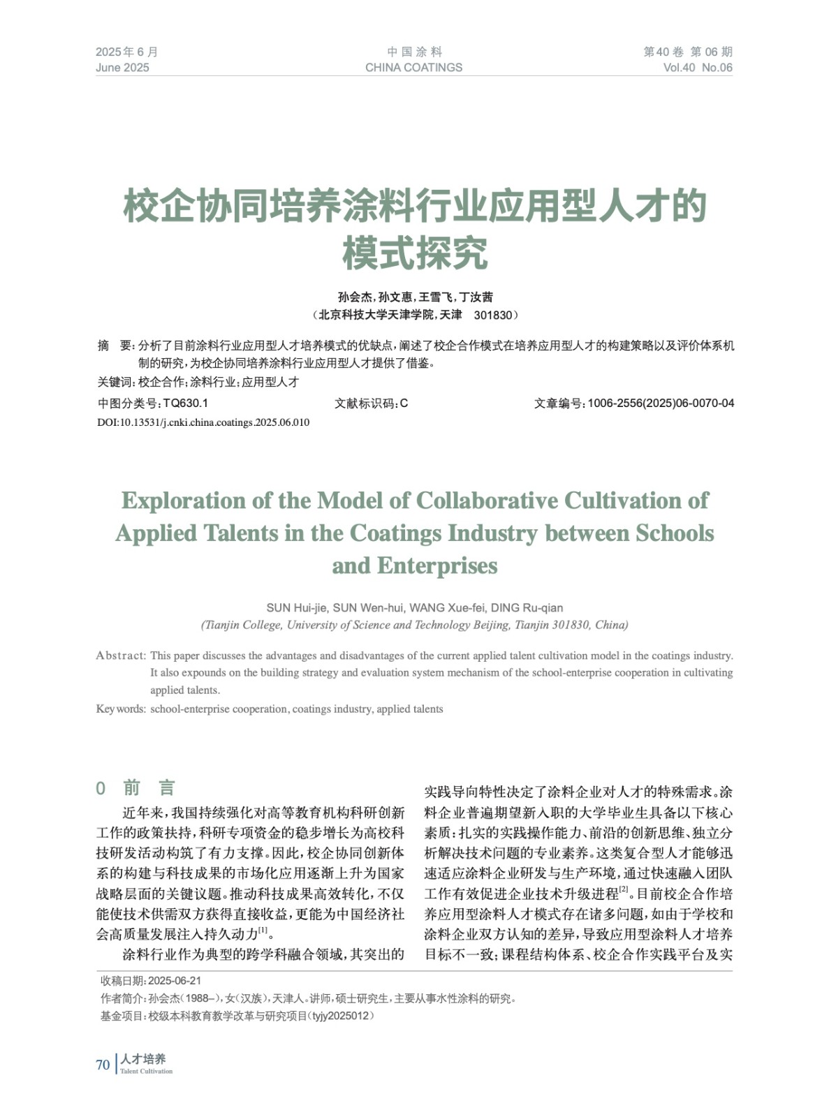 校企協同培養涂料行業應用型人才的模式探究