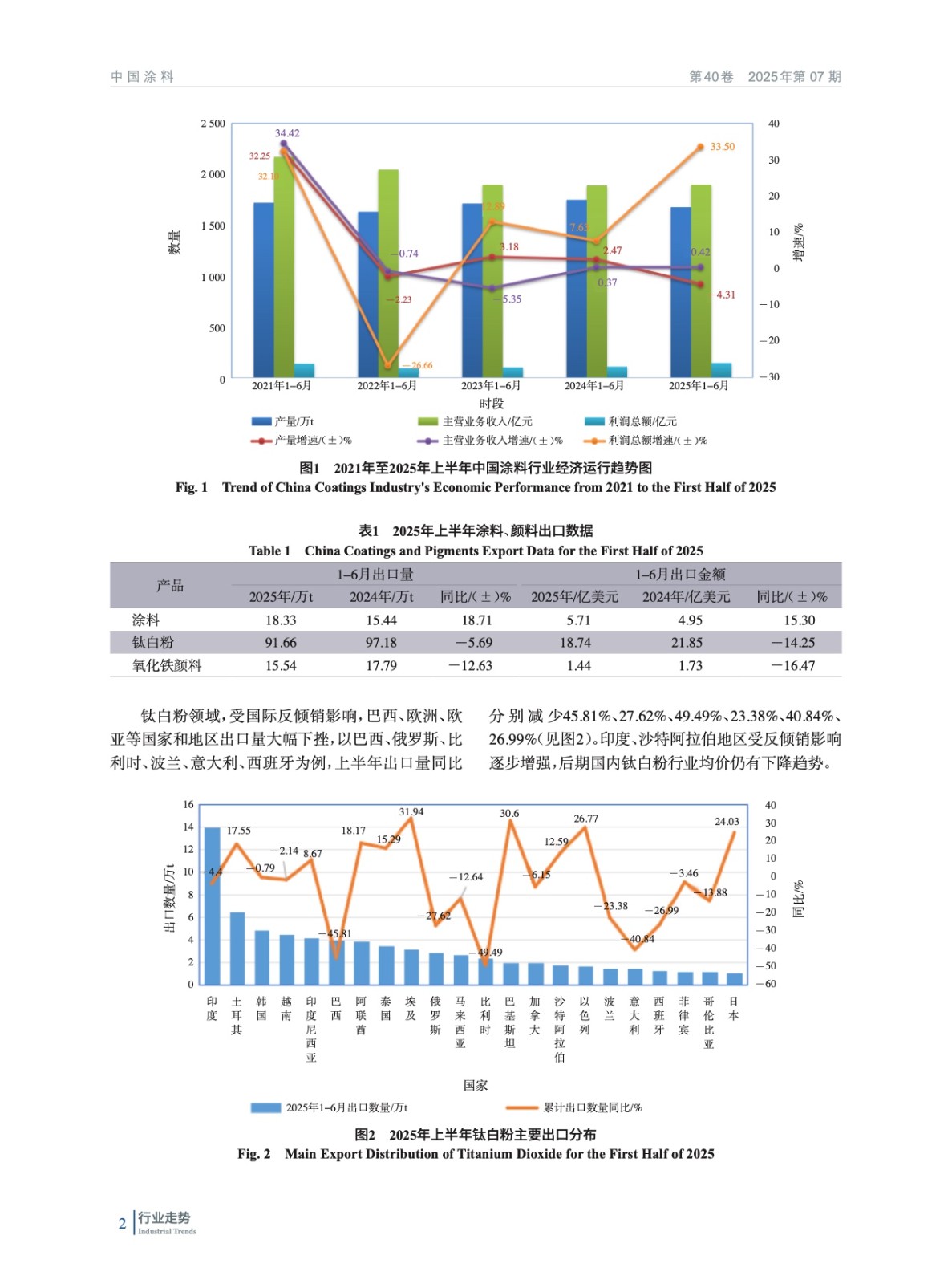 2025年上半年中國涂料、顏料行業經濟運行簡況