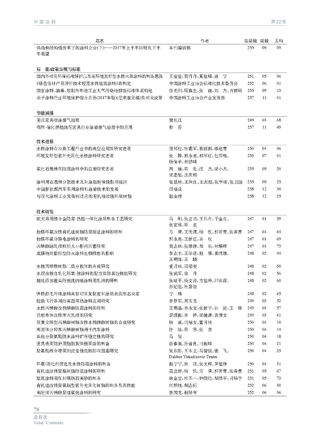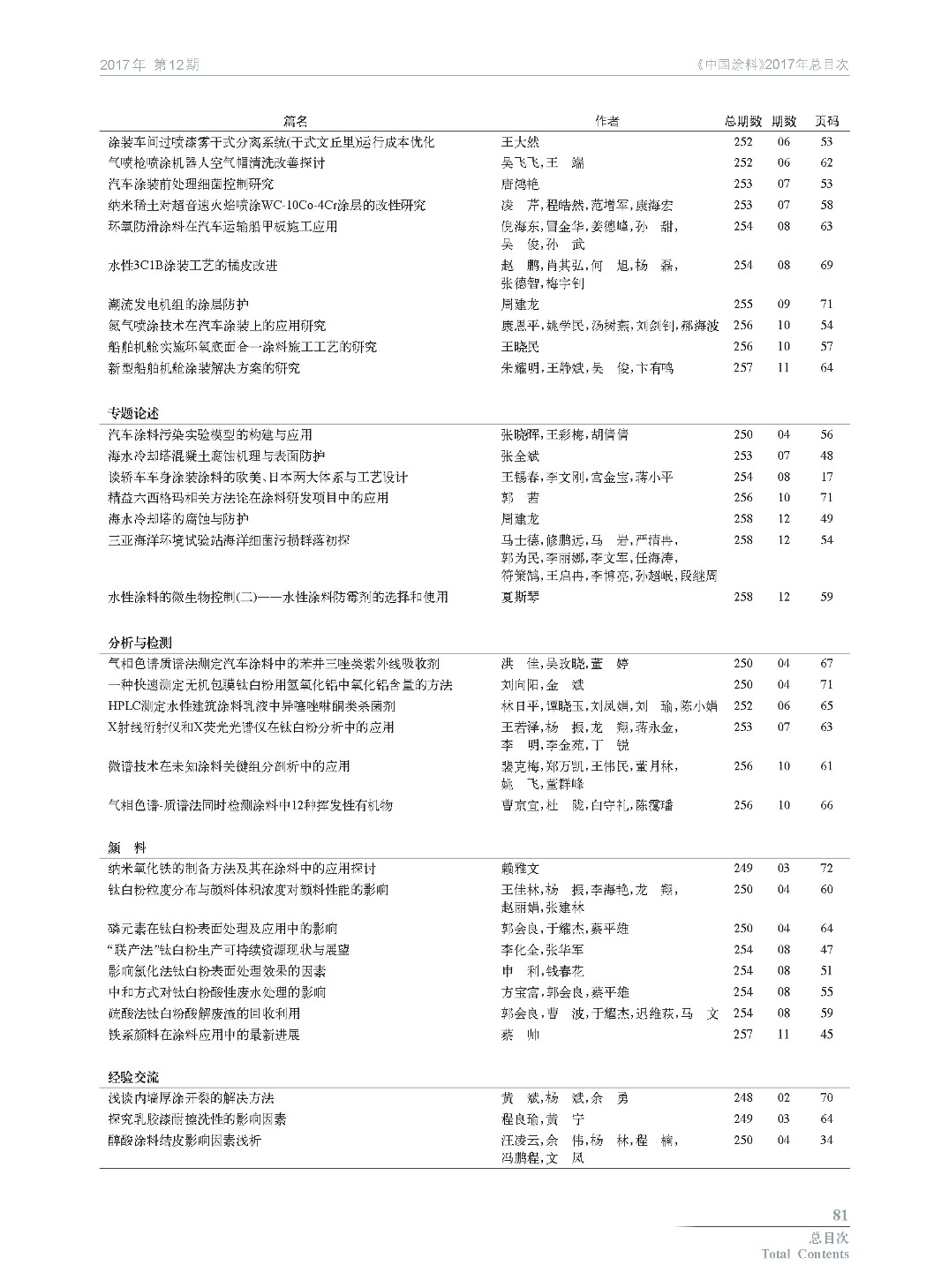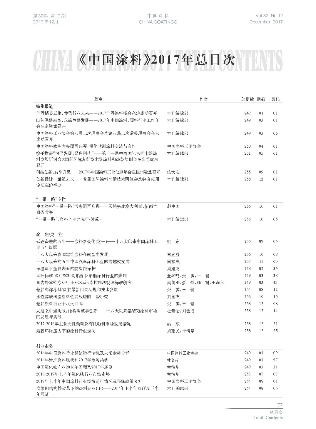 《中國(guó)涂料》2017年總目次
