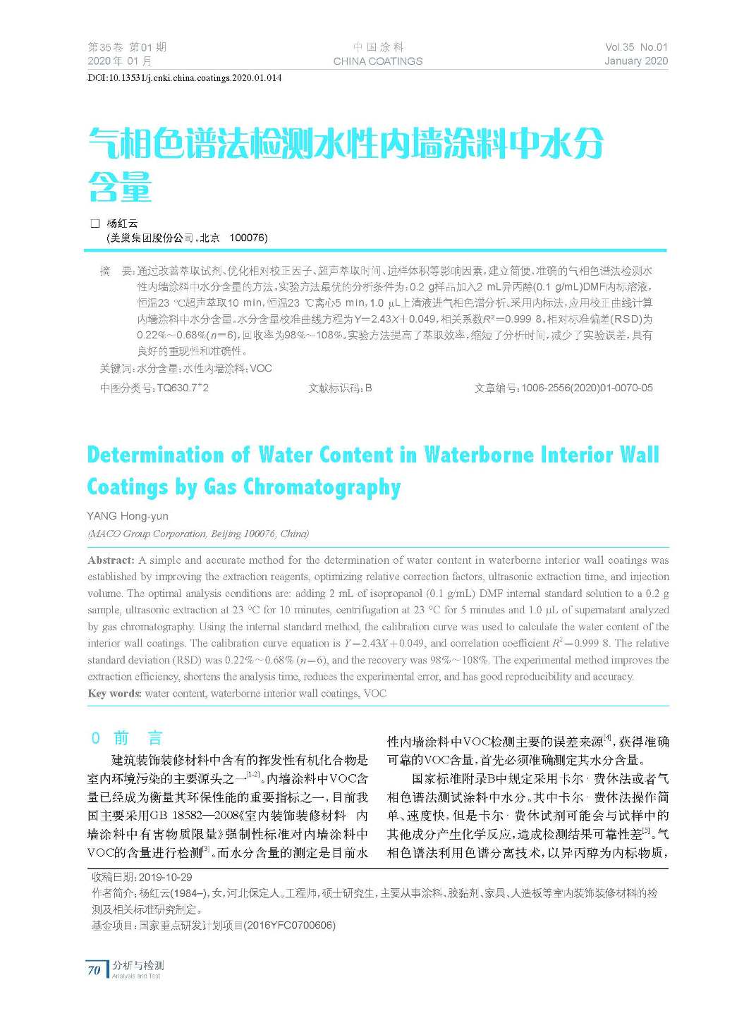 氣相色譜法檢測(cè)水性內(nèi)墻涂料中水分含量