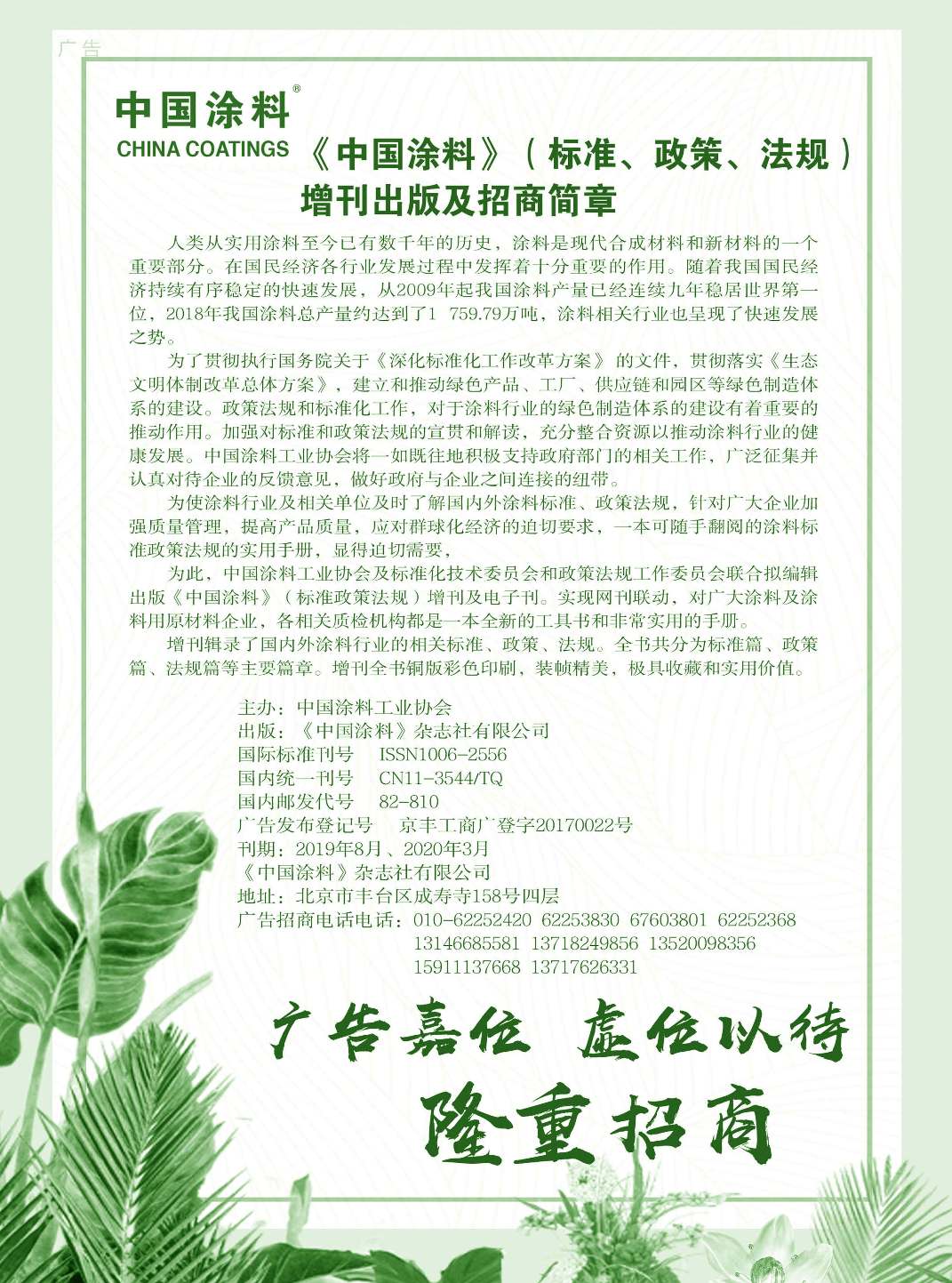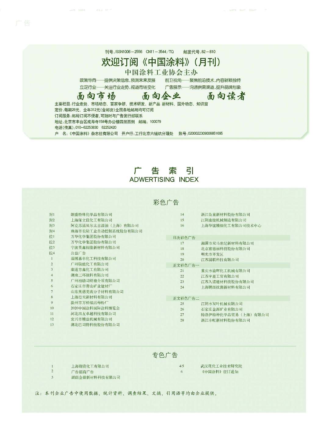 上海翔資、廣告招商、湖南金磐、武漢現代工業技術研究院、《中國涂料》征訂通知