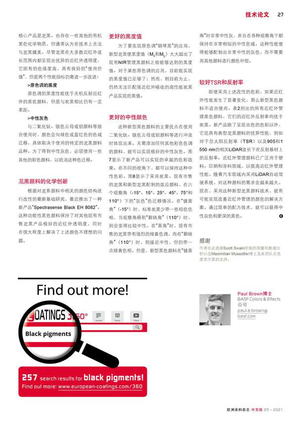 高性能NIR管理解決方案的創(chuàng)新型功能性黑色顏料