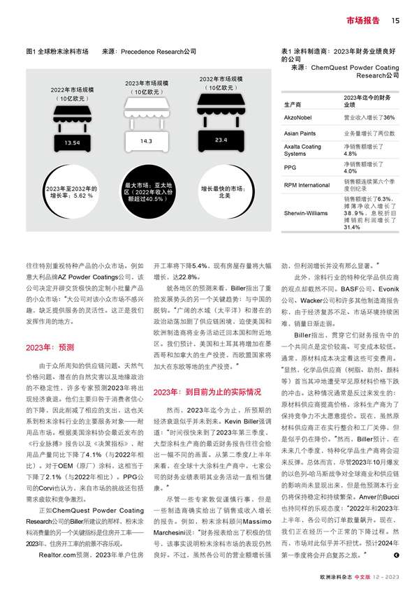 在新冠疫情之后、可能出現經濟衰退之前的一年里,粉末涂料仍然表現良好。
