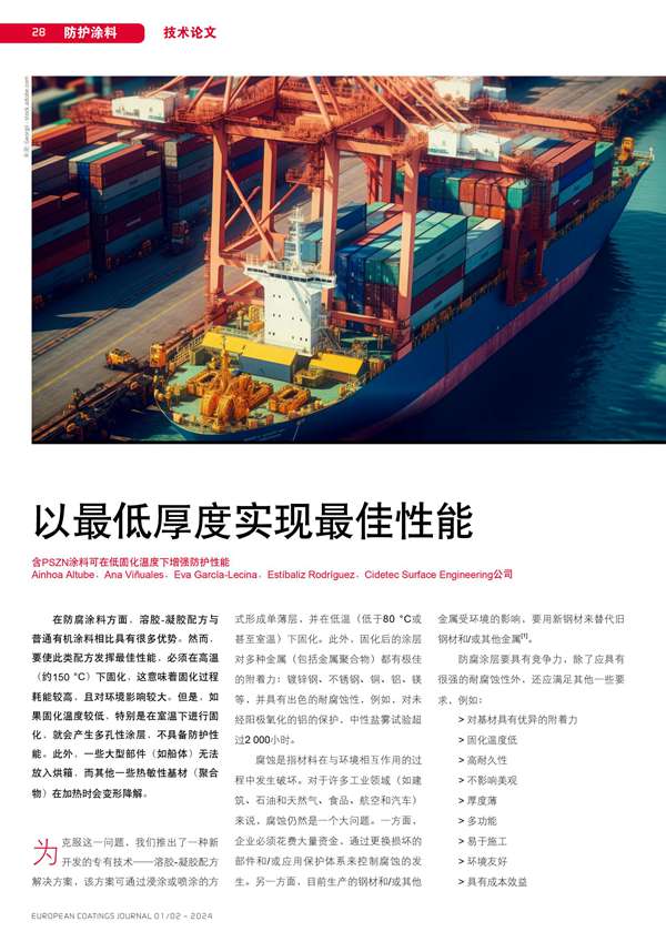 含PSZN涂料可在低固化溫度下增強(qiáng)防護(hù)性能