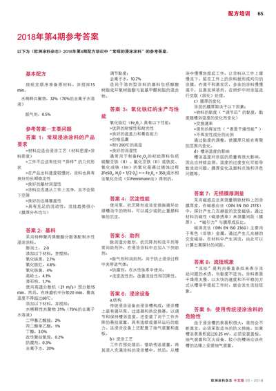 2018年第4期參考答案:常規(guī)的浸涂涂料