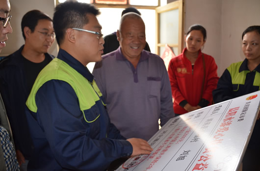 晨陽水漆工作人員為滿城小賽村路得申講解保險事宜