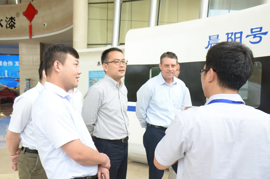 亨斯邁亞太區商務總監Shane Woodward對晨陽水漆的現場管理、技術實力及公司對水性涂料方面的貢獻表示肯定,并不時詢問相關情況,對共建聯合實驗室的方案表示認可。期間,雙方還就工程機械水性化涂裝、大型車輛水性化涂裝、石油管道防腐水性化涂裝等進行交流討論,并達成初步合作意向。