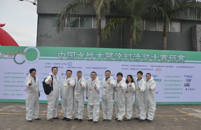 2015年12月9日—12日,由中國涂料工業協會主辦,深圳長江家具有限公司、上海市家具行業協會、深圳市計量質量檢測研究院承辦,淄博嘉豐化工科技發展有限公司協辦,中國家具協會特別支持的“中國水性木器涂料涂裝大賽預賽”在深圳長江家具有限公司成功舉辦。中國涂料工業協會秘書長楊淵徳先生、中國涂料工業協會副秘書長劉杰先生、中國水性木器涂料產業聯盟領導楊獻先生、深圳長江家具有限公司副總經理兼生產總監姚若靈先生、深圳市計量質量檢測研究院所長吳海濤先生、北京化工大學教授何立凡先生、安徽大學化學化工學院教授吳海平女士等嘉賓出席活動開幕式。