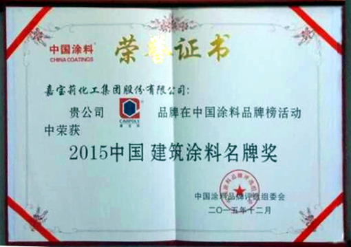 12月18日,2015中國水性工業涂料發展研討會在京召開。會議旨在順應國家系列環保法規,加快涂料行業的轉型升級。會議同期還舉辦了2015中國涂料品牌榜頒獎活動,嘉寶莉是獲獎最多的企業之一,先后被授予為2015“中國藝術涂料名牌獎”、“中國建筑涂料名牌獎”、“中國木器涂料名牌獎”、“中國防腐涂料名牌獎”,嘉寶莉董事長仇東航還榮獲了“2015中國涂料行業精英獎”。
