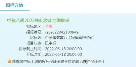中標|巴德士成功中標2022年中建八局( 全國區域)乳膠漆聯采項目