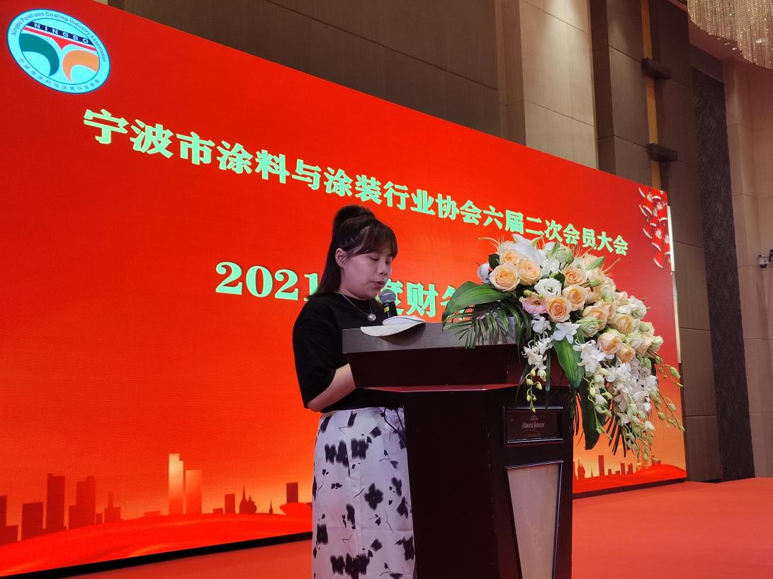 寧波知聯(lián)三江稅務師事務所有限公司嚴珂娜經(jīng)理為大會作《寧波市涂料與涂裝行業(yè)協(xié)會2021年度財務收支報告》。
