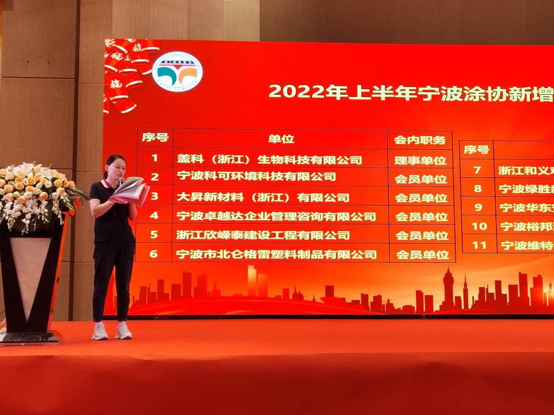寧波涂協(xié)王銀璐副秘書長向大會通報了《寧波涂協(xié)新增會員及會內(nèi)職務變動情況說明》。