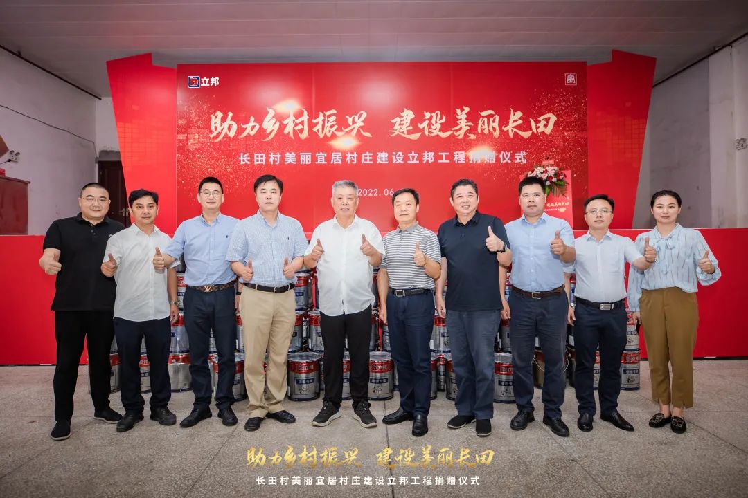 原長沙市人大常委會副主任周里冰、長沙市農業農村局副局長黃志強、長沙市農業農村局調研員彭樹榮、長沙市農業農村局社會事務促進處處長謝文、老糧倉鎮人大主席鄧銘星、老糧倉鎮紀委書記李映嵐、長田村總支書記周偉強、湖南鼎溈建設有限公司董事長王曉良、立邦工程南區銷售公司總經理黃衛東、立邦工程湖南大區總經理汪飛等人出席了捐贈儀式,為長田村捐贈外墻涂料產品,通過建筑更新改造一站式涂裝解決方案,助力美麗宜居村莊建設。