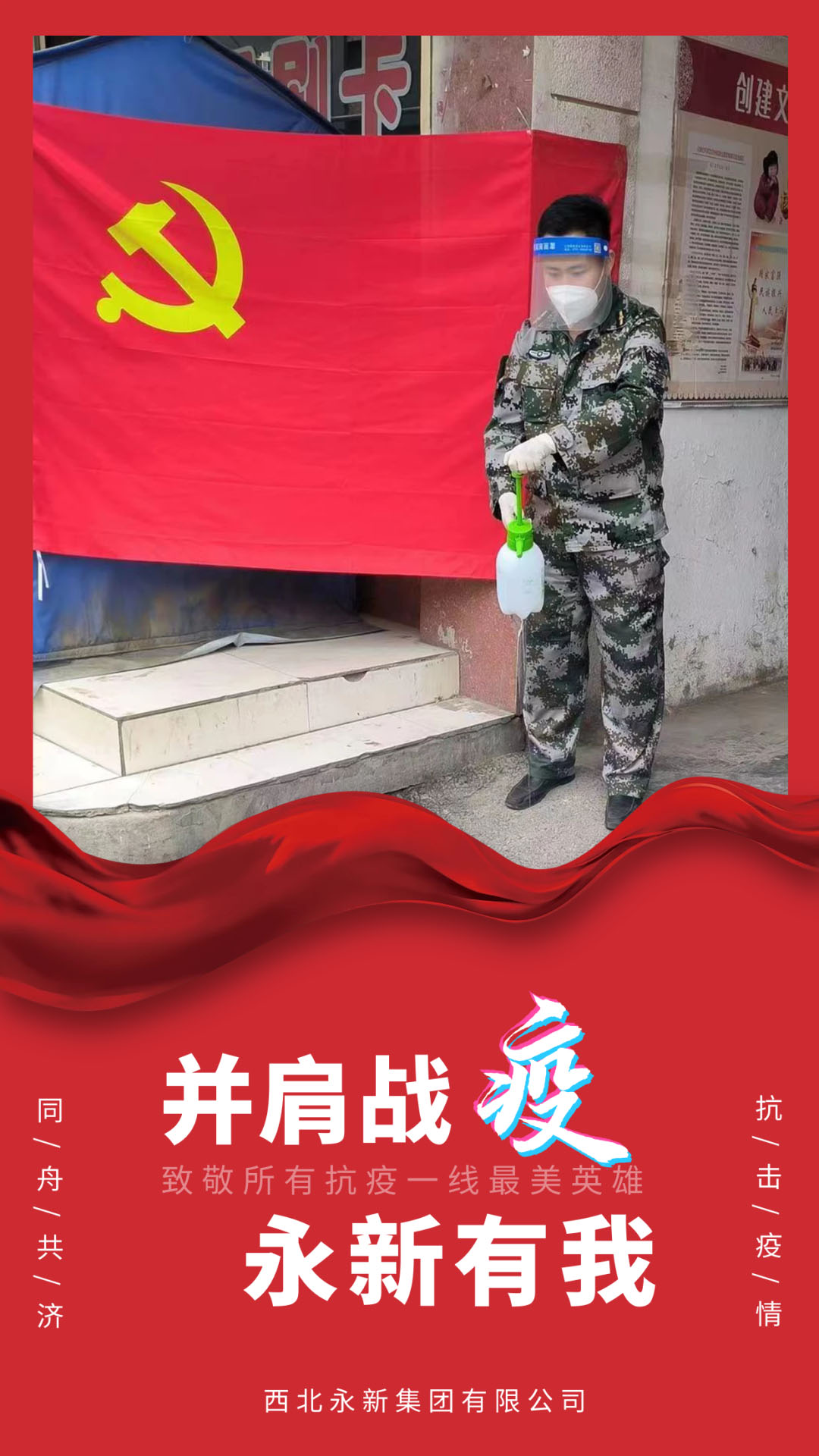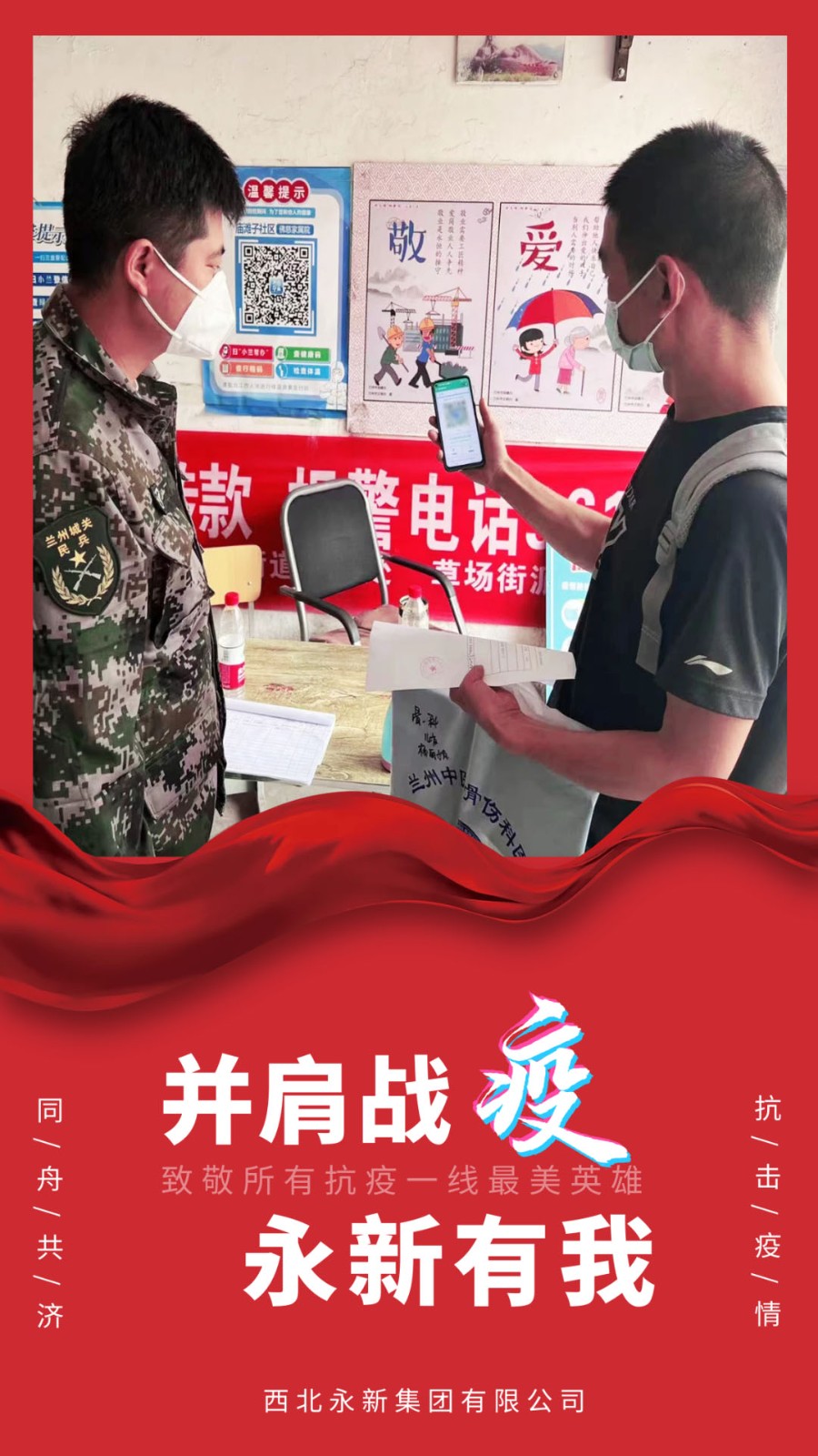 近期,蘭州疫情防控形勢(shì)嚴(yán)峻,蘭州市四區(qū)延長(zhǎng)一周臨時(shí)性管控措施。西北永新集團(tuán)黨員干部職工積極響應(yīng)甘肅科技集團(tuán)黨委和公司黨委號(hào)召,危難時(shí)刻站得出來(lái),關(guān)鍵時(shí)刻看得出來(lái),積極奔赴抗疫一線,主動(dòng)參與疫情防控工作,展現(xiàn)國(guó)企責(zé)任,體現(xiàn)個(gè)人擔(dān)當(dāng),干在先、沖在前,共同守護(hù)健康美好家園。