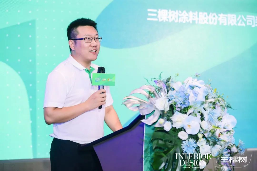 活動中王通虎總經理致辭。他說,作為中國民族涂料領軍品牌,三棵樹的發展要感恩偉大的祖國、偉大的時代,感恩每一位支持三棵樹成長的用戶們。三棵樹愿意與所有設計師保持更加緊密的連接,在良性循環中,促進彼此的可持續發展。以“三棵樹健康+室內設計新星大賽”為契機,三棵樹將繼續關注和扶持年輕設計師群體的成長,為他們創造學習、交流的機會。同時,我們也希望三棵樹品牌能夠讓更多的設計師認知并認可,通過他們的設計將品牌傳達給千家萬戶。