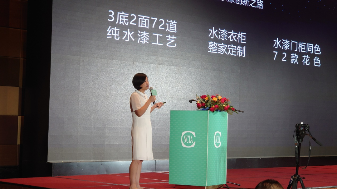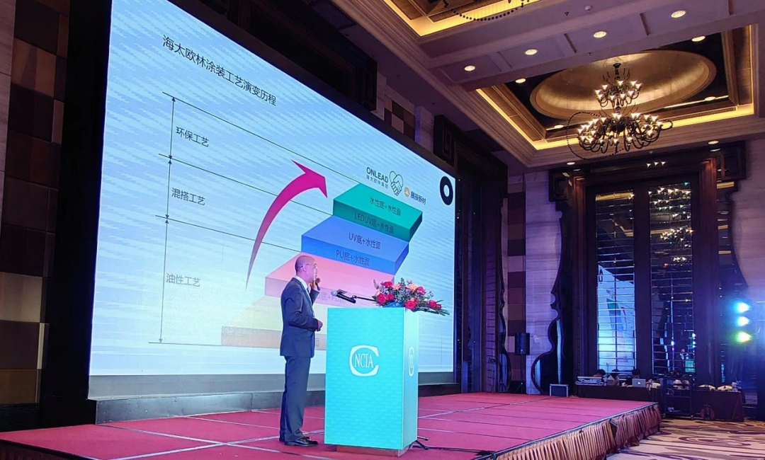 本次會議有一個特殊的環節,邀請優秀的家具制造企業上臺分享,為大家講述家具制造企業油轉水的心得及歷程。展辰涂料的優秀合作伙伴海太歐林集團有限公司營銷總監趙霖飛先生、百得勝智能家居有限公司總經理助理張慧女士分別帶來精彩分享,展現了優秀家居制造企業對綠色家居理念的堅守、對環保涂裝升級的決心,并分享了與展辰一同攻克“油轉水”技術難關的經驗及心得。兩位嘉賓的分享引起上下游企業的深刻共鳴,得到了與會行業同仁的熱烈掌聲。此時此刻,大家都知道,環保水性木器涂料的發展一定要打通上下游,從終端需求到頂層研發,形成良性的反饋機制,小步快跑、協同進步,這樣水性涂料才會有良性發展和未來。