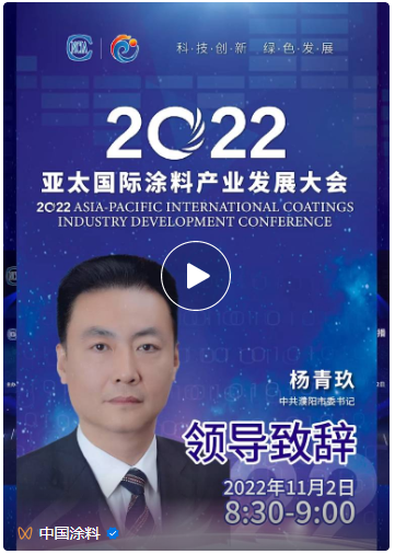 11月2日,以“科技創新,綠色發展”為主題、由中國涂料工業協會、濮陽市人民政府聯合主辦的“2022年亞太國際涂料產業發展大會”以網絡直播形式正式拉開帷幕,大咖云集,干貨滿滿,吸引了數以百萬計的涂料、涂裝及上下游人士在線觀看。
