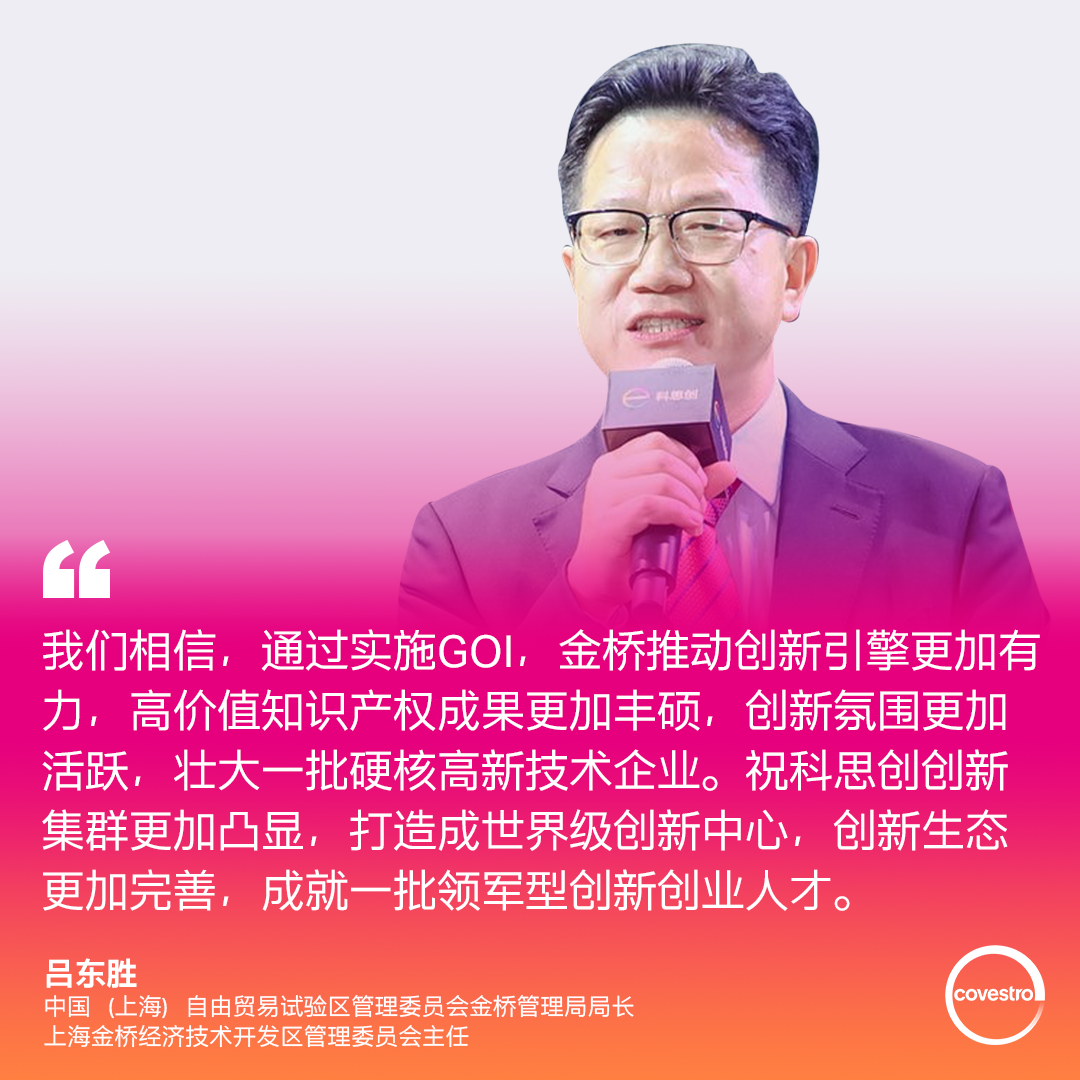 2021年12月,科思創(chuàng)開放創(chuàng)新中心作為第二批成員正式加入浦東大企業(yè)開放創(chuàng)新中心(GOI)計劃。這是對科思創(chuàng)在開放創(chuàng)新方面的專業(yè)能力和領(lǐng)導地位的肯定,也代表著浦東引領(lǐng)區(qū)毫無保留地對外資企業(yè)敞開了本土創(chuàng)新生態(tài)和資源的大門。