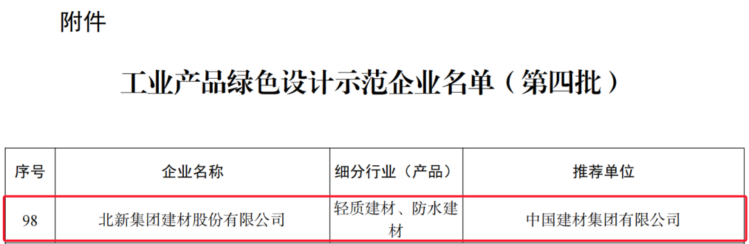 11月22日,工業和信息化部公布了第四批工業產品綠色設計示范企業名單,北新建材再添國家級榮譽——獲評“工業產品綠色設計示范企業”。