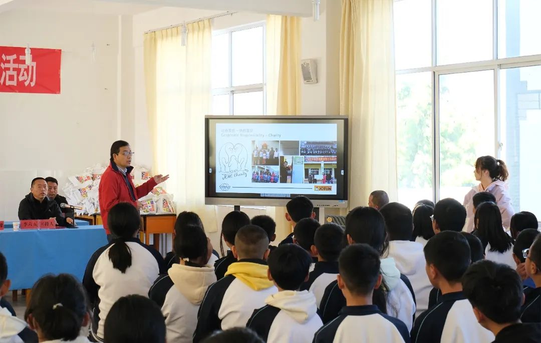 中遠佐敦副總經(jīng)理楊杰對受助學(xué)生們表達了佐敦對孩子們的期待,希望孩子們要聽從學(xué)校和老師的教導(dǎo),心懷感恩之心,以優(yōu)異的成績作為回報,成為對社會有貢獻的人。如果生活上有什么困難,可以通過學(xué)校向佐敦反應(yīng),佐敦將盡最大努力為孩子們提供支持與幫助。