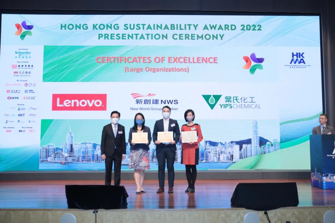 葉氏化工連續兩年榮獲由香港管理專業協會頒發的香港可持續發展獎「卓越獎」(大機構類別)。