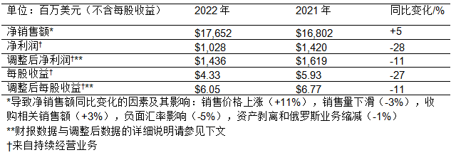 ● 2022年全年創(chuàng)紀(jì)錄實(shí)現(xiàn)銷售額約177億美元,其中有機(jī)增長(zhǎng)達(dá)8%