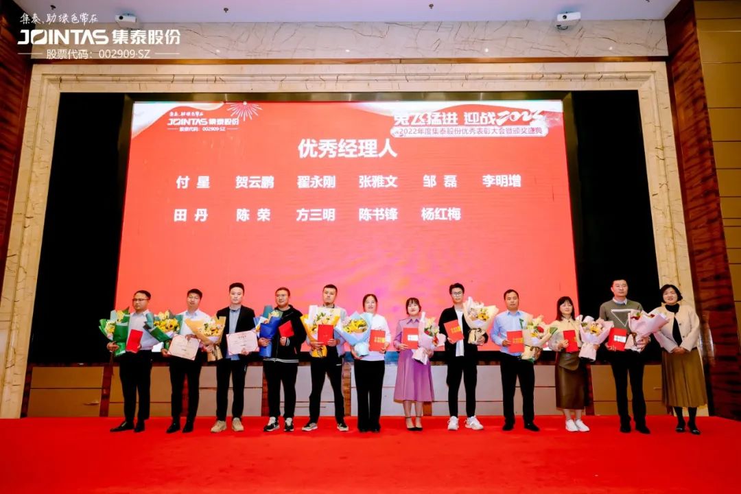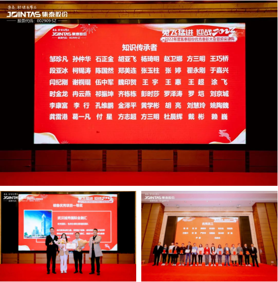 此次盛典,頒發了集泰之星、優秀經理人、優秀辦事處、優秀團隊、最佳進步團隊、優秀黨務工作者、優秀員工、科技進步獎、重大項目獎等10余個獎項。經過多方綜合評估,評選出2022年度集泰之星7人、優秀經理人19人、優秀辦事處1個、銷售部&渠道部優秀團隊3個、銷售部&渠道部最佳進步團隊6個、制造中心年度優秀團隊5個、制造中心最快進步獎2名、優秀黨務工作者2名、優秀員工142人、科技進步獎5個、銷售部&渠道部重大項目獎7個、知識傳承者77人、品牌推廣優秀工作者43人等獎項。