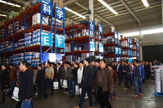 參會(huì)的行業(yè)領(lǐng)導(dǎo)及自行車數(shù)百名廠商代表集體參觀晨陽(yáng)水漆廠區(qū)