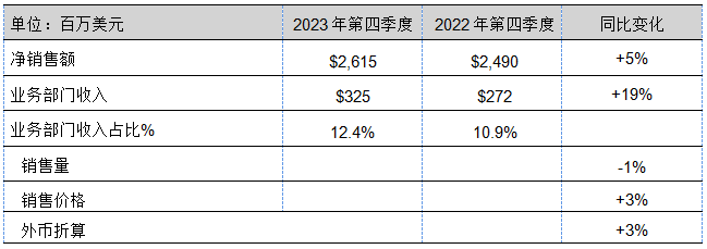 2023年第四季度各業(yè)務(wù)部門業(yè)績表現(xiàn)