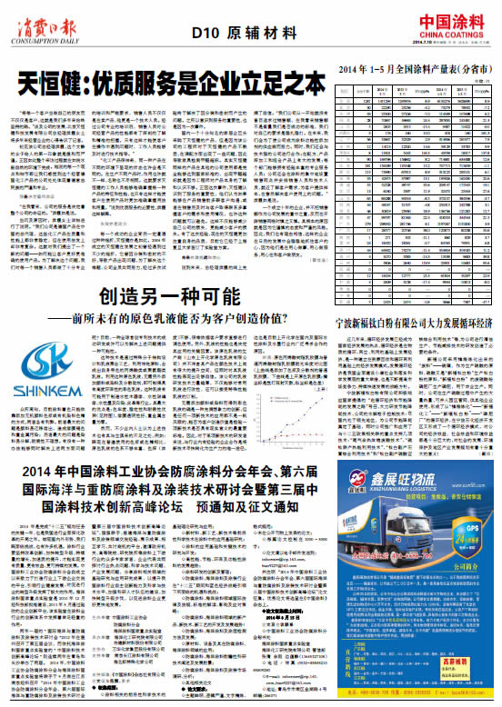《中國涂料報》(電子版)的一切內容(包括但不限于文字、圖片、PDF、圖表、標志、標識、商標、版面設計、專欄目錄與名稱、內容分類標準以及為讀者提供的任何信息)僅供中國涂料信息網讀者閱讀、學習研究使用,未經中國涂料雜志社有限公司及/或相關權利人書面授權,任何單位及個人不得將《中國涂料報》(電子版)所登載、發布的內容用于商業性目的,包括但不限于轉載、復制、發行、制作光盤、數據庫、觸摸展示等行為方式,或將之在非本站所屬的服務器上作鏡像。否則,中國涂料雜志社有限公司將采取包括但不限于網上公示、向有關部門舉報、訴訟等一切合法手段,追究侵權者的法律責任。