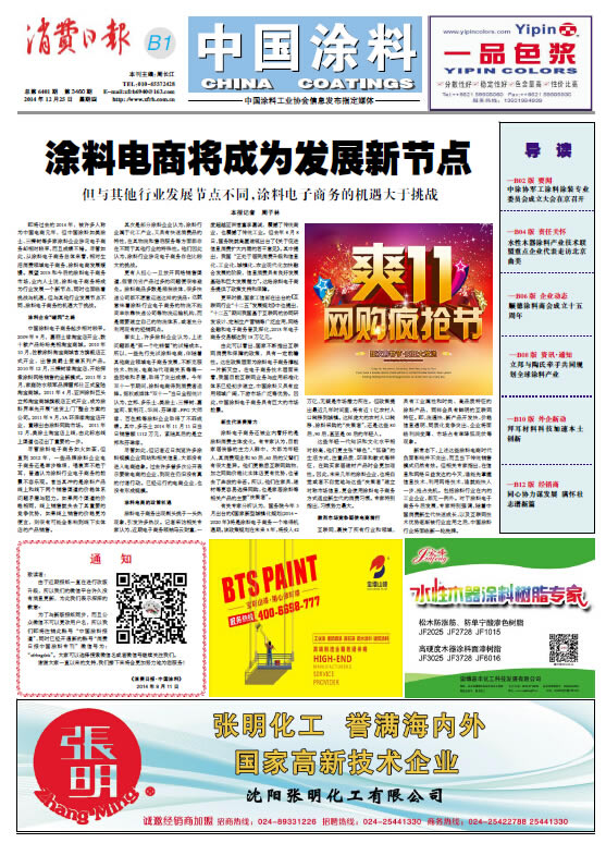中國涂料報(bào) 2014年12月25日 星期四