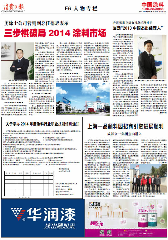 美涂士公司營銷副總?cè)蔚轮冶硎救狡迤凭?014涂料市場